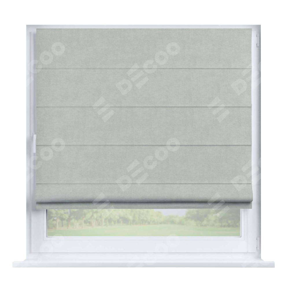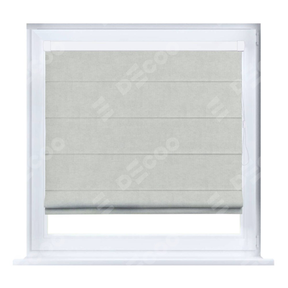 Римская штора производителя «Cortin», устанавливается на створку окна, пошита из ткани канвас светло-серый, артикул v-371. Штора шьётся по индивидуальным размерам, для данного типа римской шторы возможная ширина от 35 до 150 см., высота до 250 см.