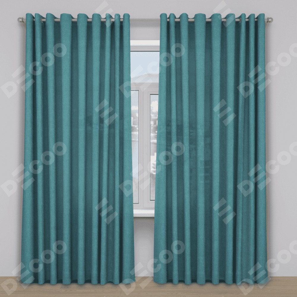 Шторы на люверсах ткань лён бирюзовый отлично подойдёт для интерьера загородный дом, спальня и кабинет.