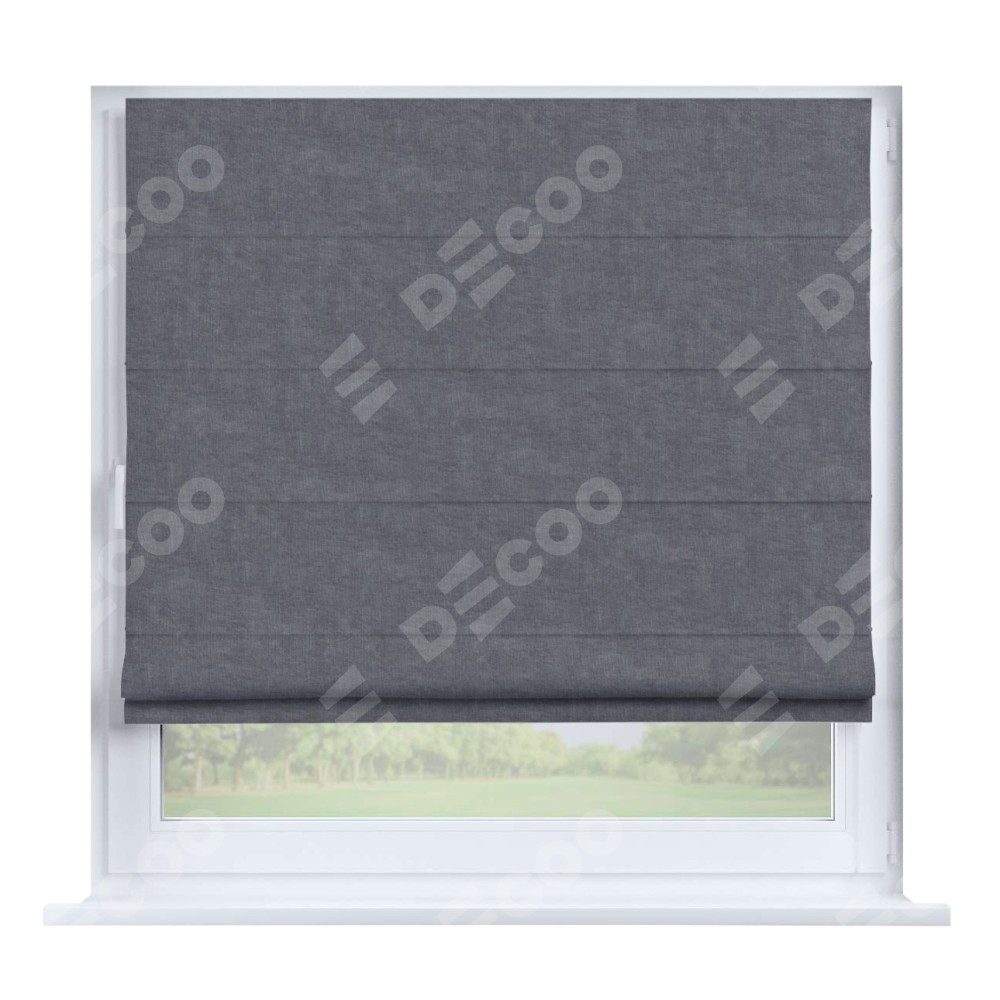Римская штора производителя «Cortin», устанавливается на створку окна, пошита из ткани канвас стальной, артикул v-1082. Штора шьётся по индивидуальным размерам, для данного типа римской шторы возможная ширина от 35 до 150 см., высота до 250 см.