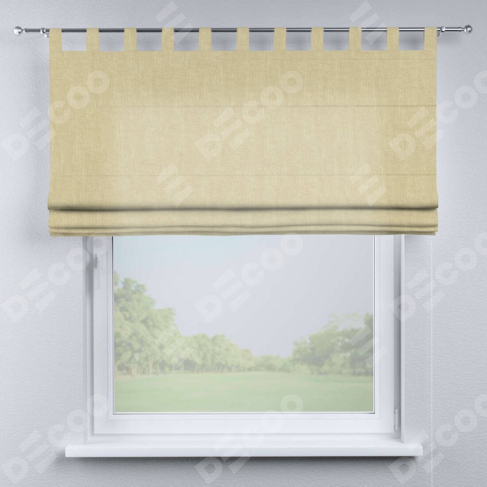 Римская штора производителя «Cortin», используется для проёма, пошита из ткани канвас тёмно-бежевый, артикул ткани v-196. Данная модель пошита на петлях, комплектуется на выбор круглым карнизом и подходит для монтажа на стену. Римская штора на петлях имеет простую систему регулировки высоты, отличительным преимуществом данной модели является простой способ монтажа. Достаточно повесить ее на трубу и штора готова!