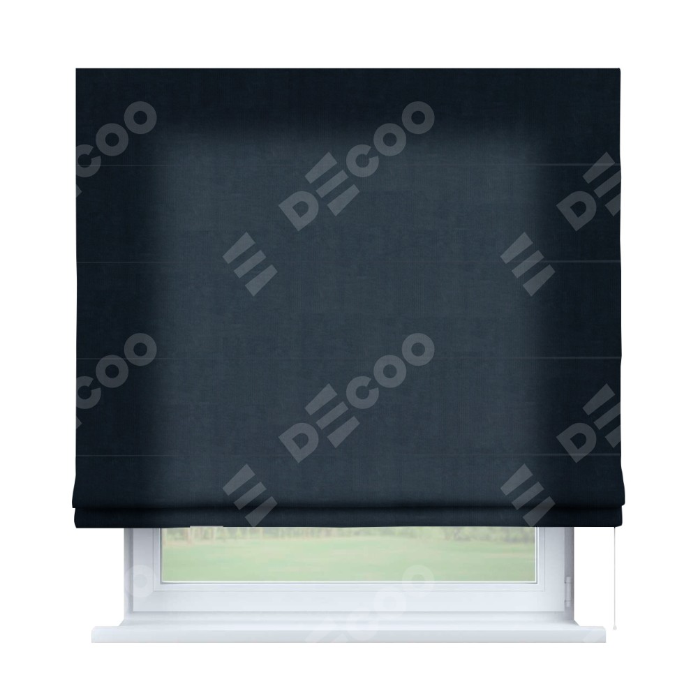 Римская штора производителя «Cortin», используется для проёма, пошита из ткани канвас тёмно-синий, артикул ткани v-206. Имеет универсальный механизм и подходит для монтажа: на потолок, на стену и в нишу.