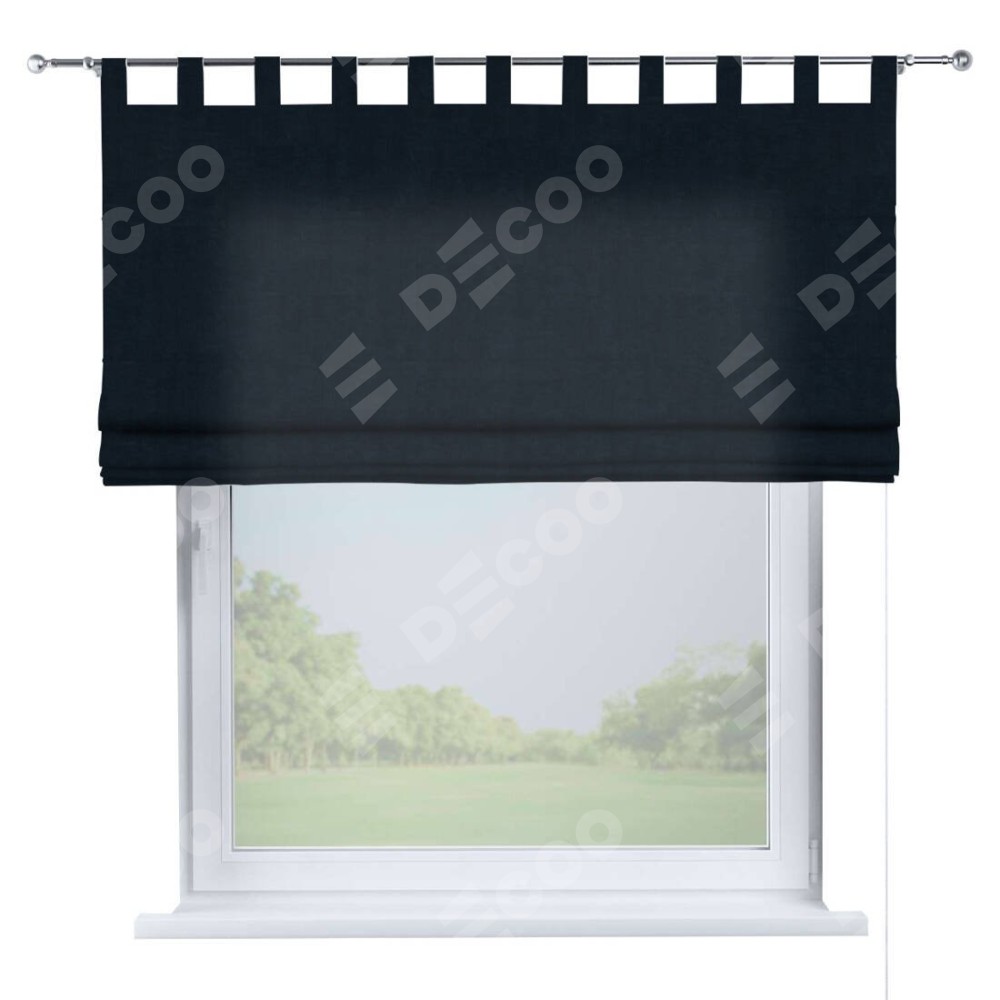 Римская штора производителя «Cortin», используется для проёма, пошита из ткани канвас тёмно-синий, артикул ткани v-206. Данная модель пошита на петлях, комплектуется на выбор круглым карнизом и подходит для монтажа на стену. Римская штора на петлях имеет простую систему регулировки высоты, отличительным преимуществом данной модели является простой способ монтажа. Достаточно повесить ее на трубу и штора готова!