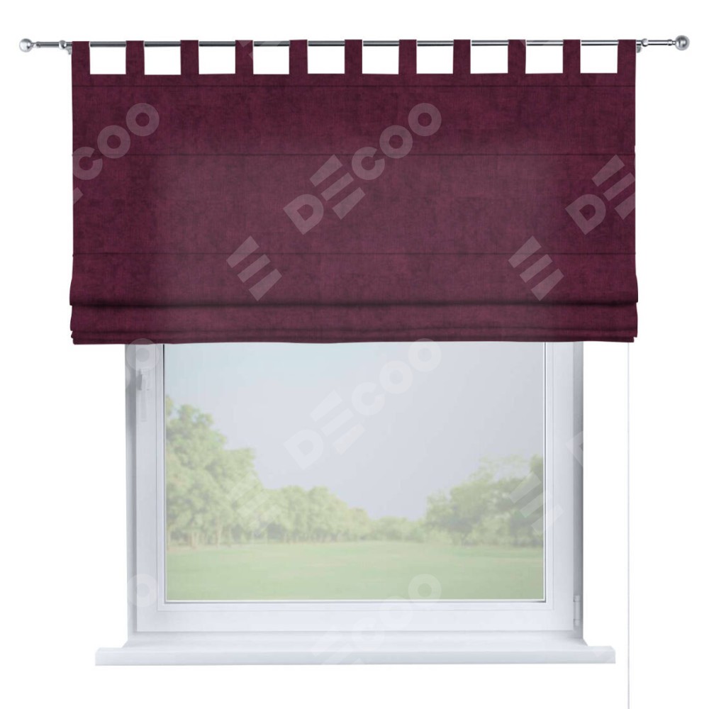 Римская штора производителя «Cortin», используется для проёма, пошита из ткани канвас фиолетовый, артикул ткани v-99. Данная модель пошита на петлях, комплектуется на выбор круглым карнизом и подходит для монтажа на стену. Римская штора на петлях имеет простую систему регулировки высоты, отличительным преимуществом данной модели является простой способ монтажа. Достаточно повесить ее на трубу и штора готова!