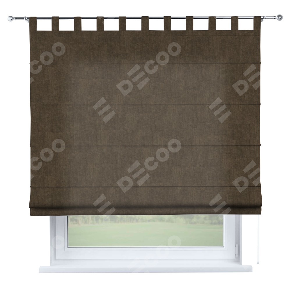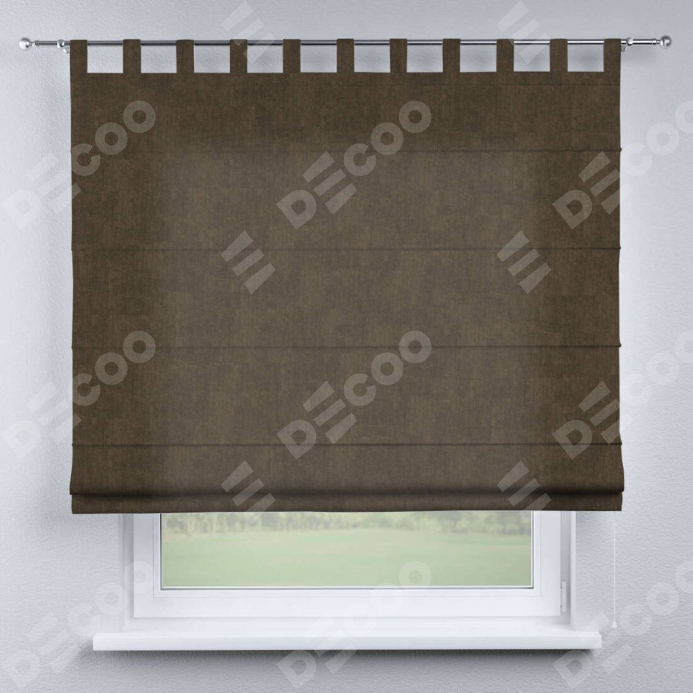 Римская штора производителя «Cortin», используется для проёма, пошита из ткани канвас шоколадный, артикул ткани v-193. Данная модель пошита на петлях, комплектуется на выбор круглым карнизом и подходит для монтажа на стену. Римская штора на петлях имеет простую систему регулировки высоты, отличительным преимуществом данной модели является простой способ монтажа. Достаточно повесить ее на трубу и штора готова!