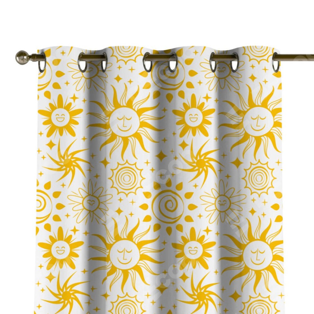 Комплект штор на люверсах «Солнышки» отлично подойдёт для интерьера шторы в детскую, шторы для комнаты и шторы для квартиры.