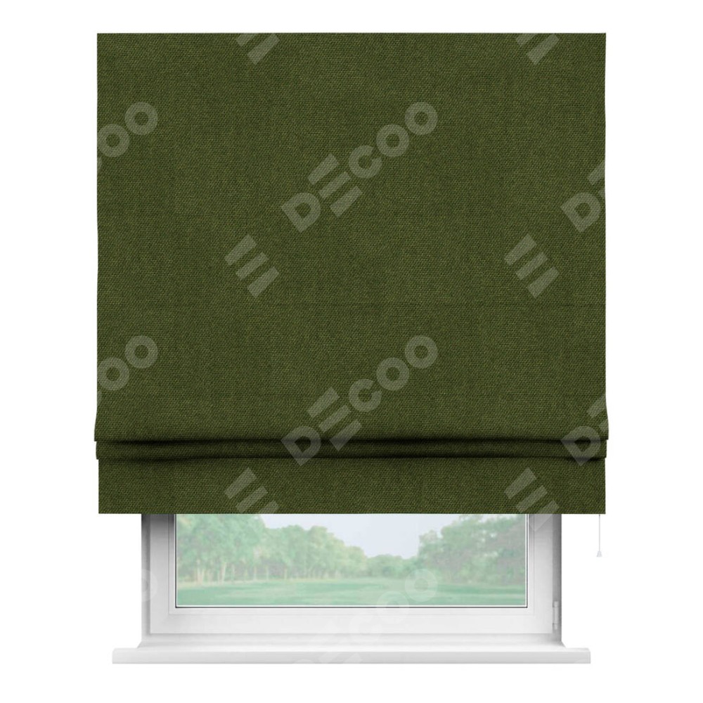 Римская штора производителя «Cortin», используется для проёма, пошита из ткани лён димаут салатовый, артикул ткани 91002. Имеет универсальный механизм и подходит для монтажа: на потолок, на стену и в нишу.