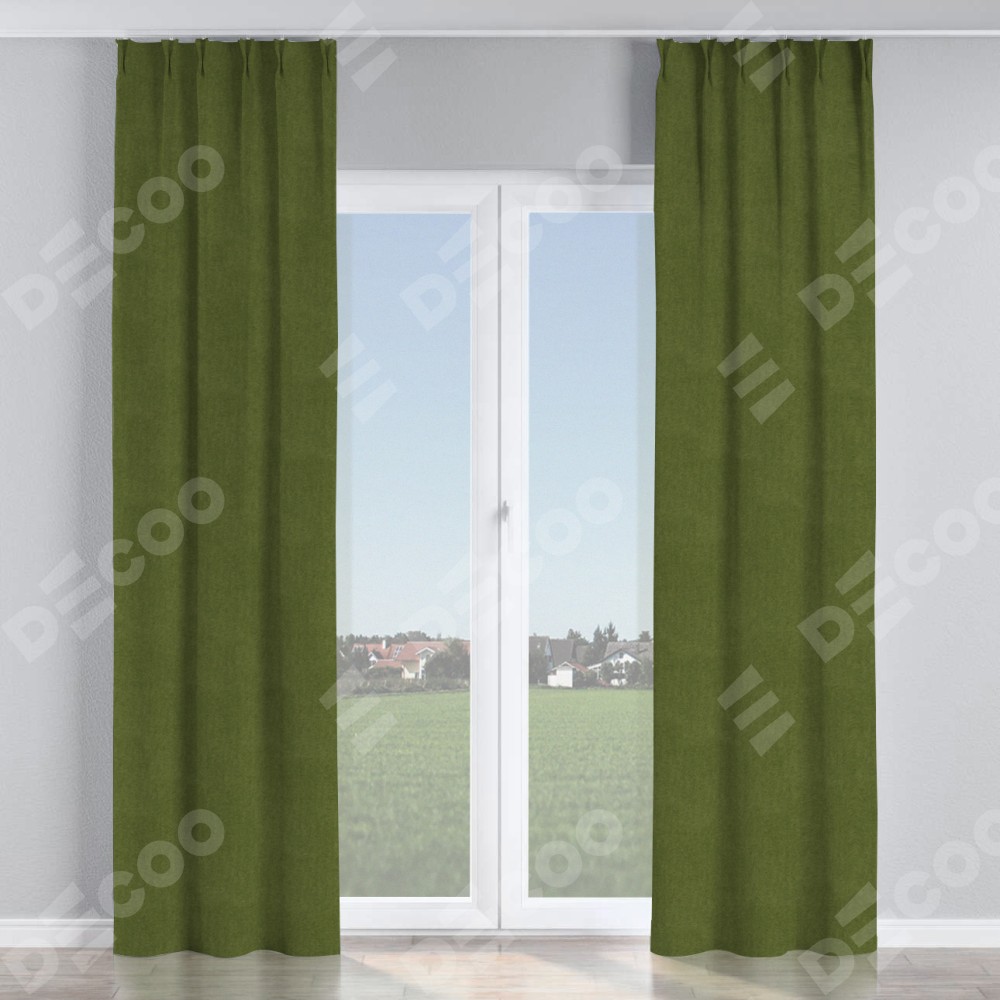 Комплект прямых штор, от производителя «Cortin», пошиты из ткани лён димаут салатовый, артикул ткани 91002. С изнаночной стороны в верхней части штор пристрачивается шторная лента с декоративными складками «Кустик». Для создания элегантных складок прямые шторы шьются по стандарту с коэффициентом 1:2 (на 100 см. ширины проёма 200 см. ширины ткани).
