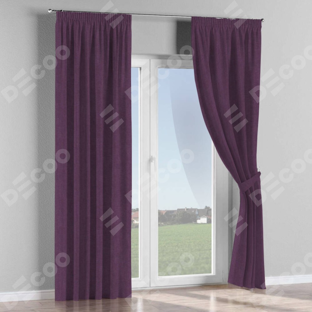 Комплект прямых штор, от производителя «Cortin», пошиты из ткани канвас баклажановый, артикул ткани v-111. С изнаночной стороны в верхней части штор пристрачивается шторная лента с декоративными складками «Карандаш». Для создания элегантных складок прямые шторы шьются по стандарту с коэффициентом 1:2 (на 100 см. ширины проёма 200 см. ширины ткани).