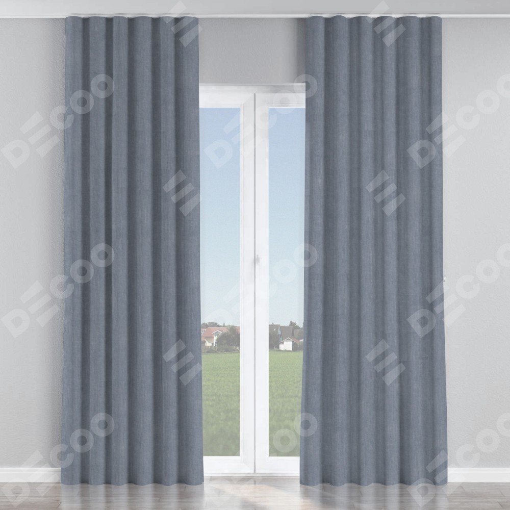 Комплект прямых штор, от производителя «Cortin», пошиты из ткани канвас васильковый, артикул ткани v-203. С изнаночной стороны в верхней части штор пристрачивается шторная лента с декоративными складками «Волна». Для создания элегантных складок прямые шторы шьются по стандарту с коэффициентом 1:2 (на 100 см. ширины проёма 200 см. ширины ткани).