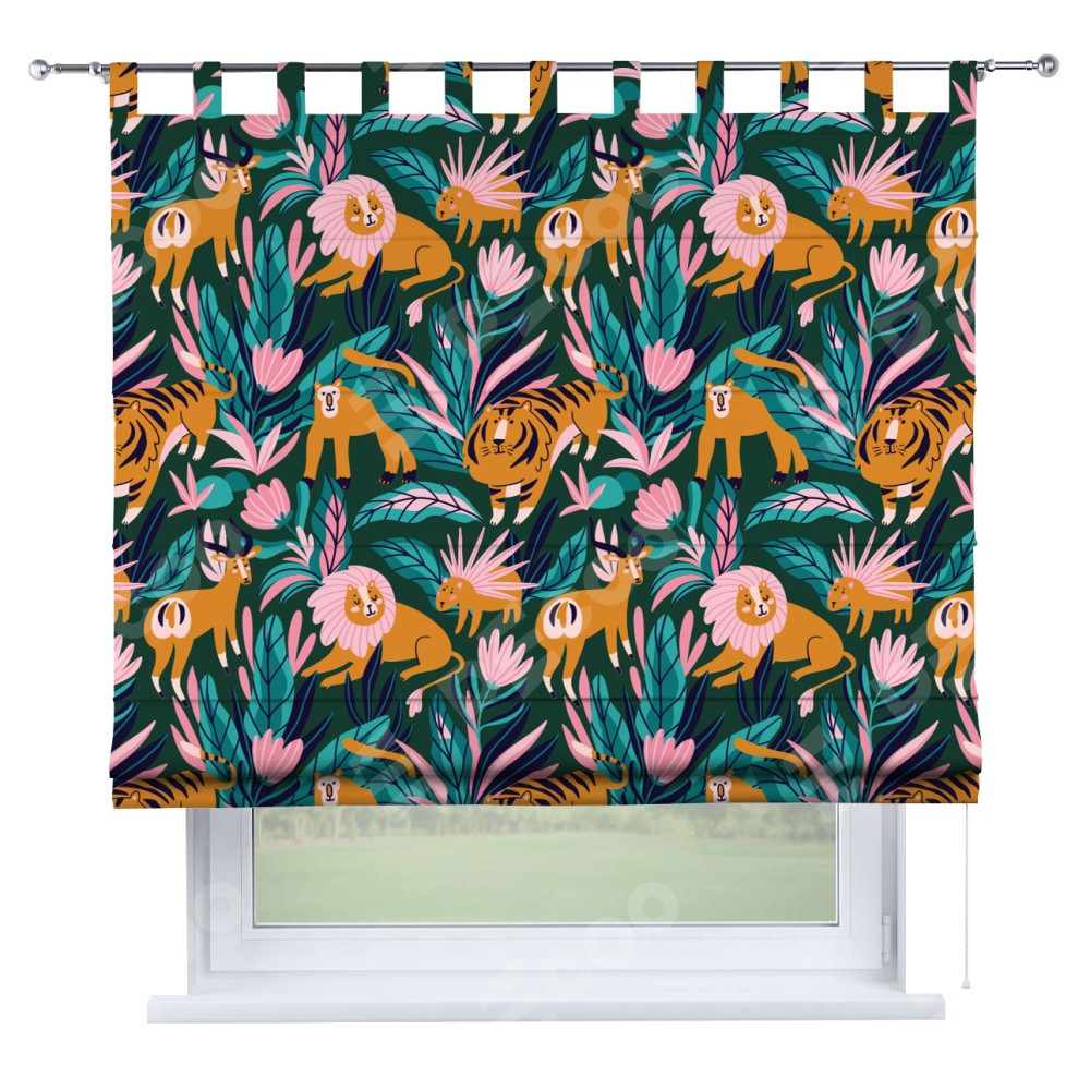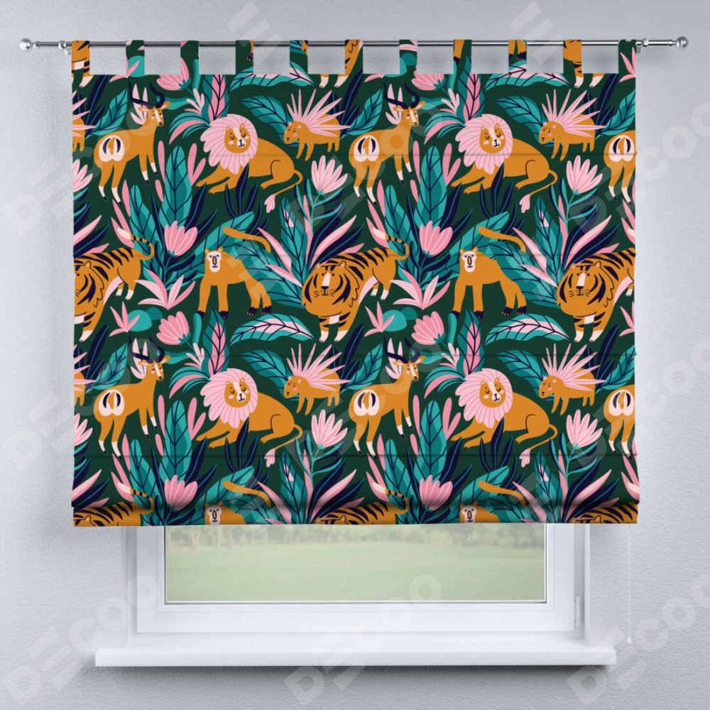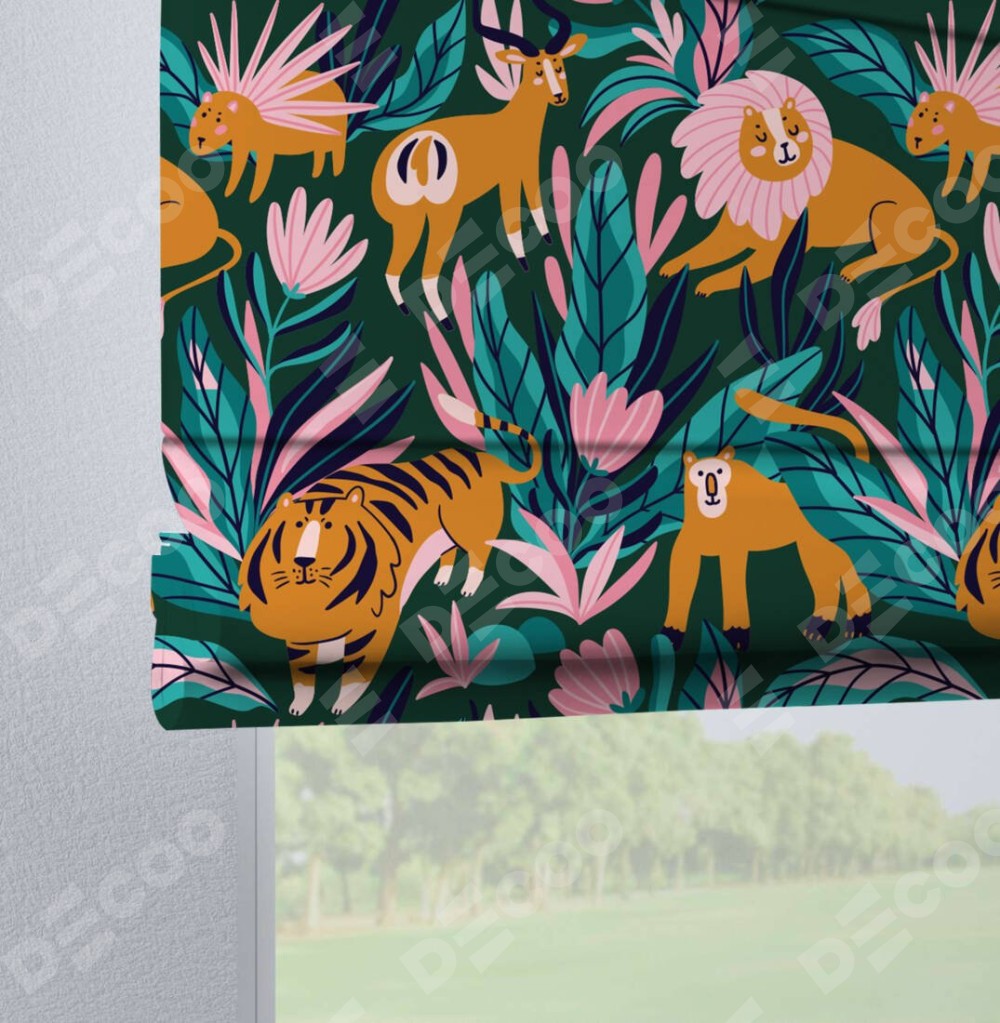 Римская штора производителя «Cortin», используется для проёма, пошита из ткани блэкаут с нанесением сублимационной печати «Дикие животные». Данная модель пошита на петлях, комплектуется на выбор круглым карнизом и подходит для монтажа на стену. Римская штора на петлях имеет простую систему регулировки высоты, отличительным преимуществом данной модели является простой способ монтажа. Достаточно повесить ее на трубу и штора готова!