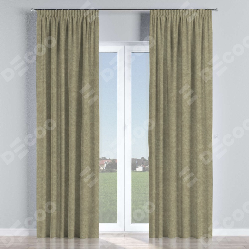 Комплект прямых штор, от производителя «Cortin», пошиты из ткани канвас капучино, артикул ткани v-211. С изнаночной стороны в верхней части штор пристрачивается шторная лента с декоративными складками «Карандаш». Для создания элегантных складок прямые шторы шьются по стандарту с коэффициентом 1:2 (на 100 см. ширины проёма 200 см. ширины ткани).
