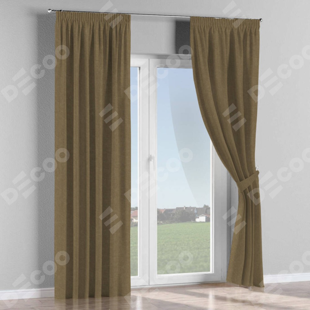 Комплект прямых штор, от производителя «Cortin», пошиты из ткани канвас молочный шоколад, артикул ткани v-08. С изнаночной стороны в верхней части штор пристрачивается шторная лента с декоративными складками «Карандаш». Для создания элегантных складок прямые шторы шьются по стандарту с коэффициентом 1:2 (на 100 см. ширины проёма 200 см. ширины ткани).