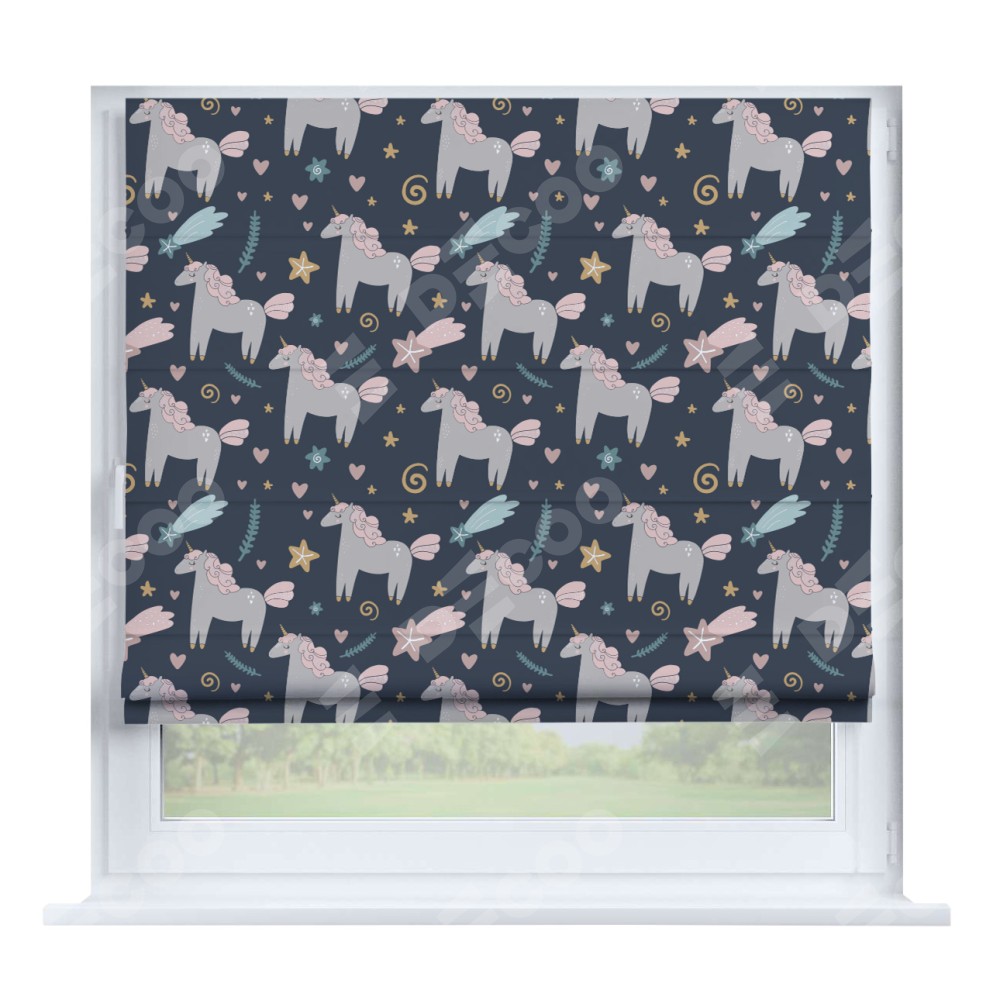 Римская штора «Кортин» на створку «Милые единороги» отлично подойдёт для интерьера: в детскую.