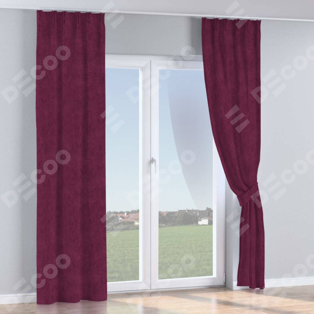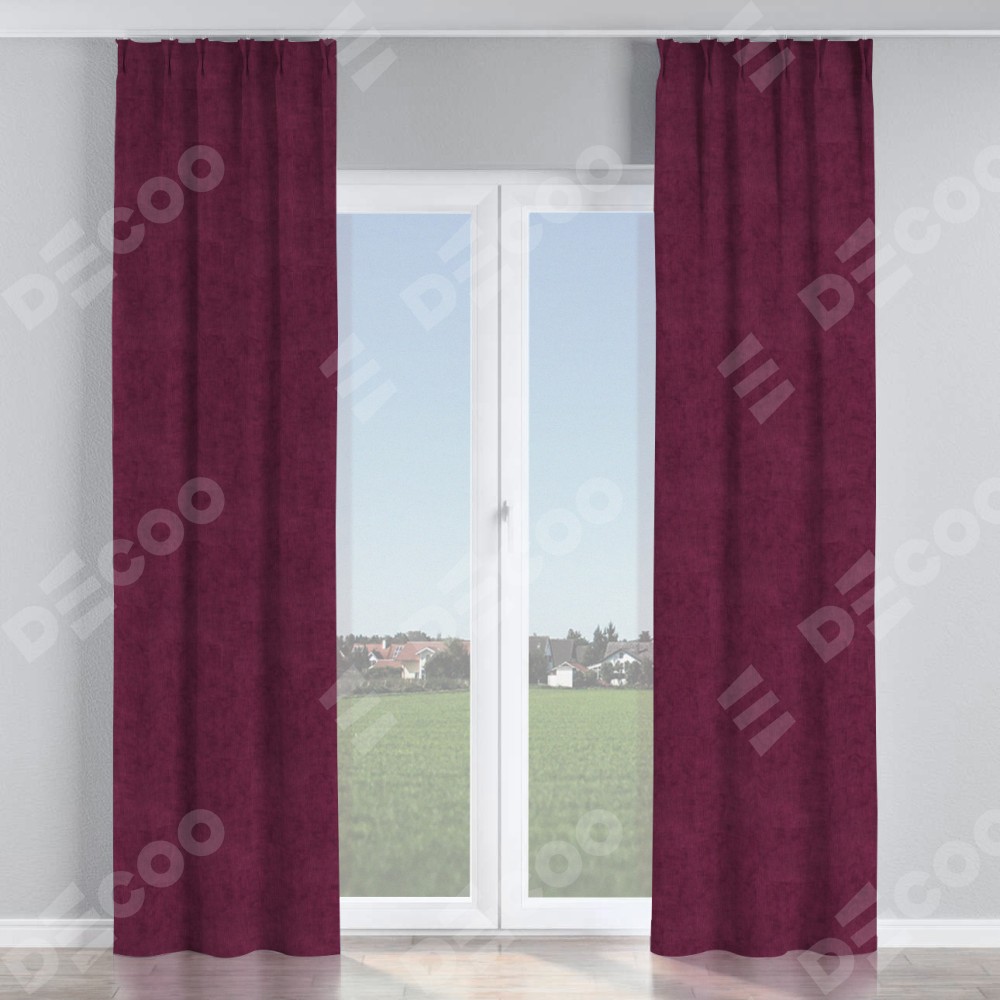 Комплект прямых штор, от производителя «Cortin», пошиты из ткани канвас фиолетовый, артикул ткани v-99. С изнаночной стороны в верхней части штор пристрачивается шторная лента с декоративными складками «Кустик». Для создания элегантных складок прямые шторы шьются по стандарту с коэффициентом 1:2 (на 100 см. ширины проёма 200 см. ширины ткани).