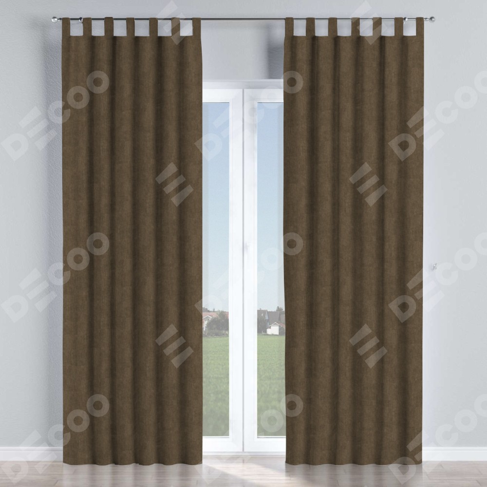 Комплект прямых штор, от производителя «Cortin», пошиты из ткани канвас шоколадный, артикул ткани v-193. Данная модель пошита на петлях, комплектуется на выбор круглым карнизом и подходит для монтажа на стену или потолок. Прямые шторы на петлях шьются по стандарту с коэффициентом 1/2 (на 100 см. ширины проёма 200 см. ширины ткани), отличительным преимуществом данной модели является простой способ монтажа. Достаточно повесить ее на трубу и штора готова!
