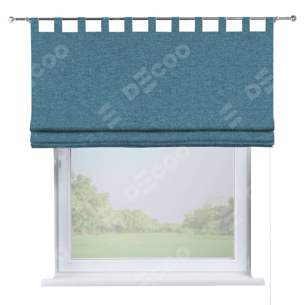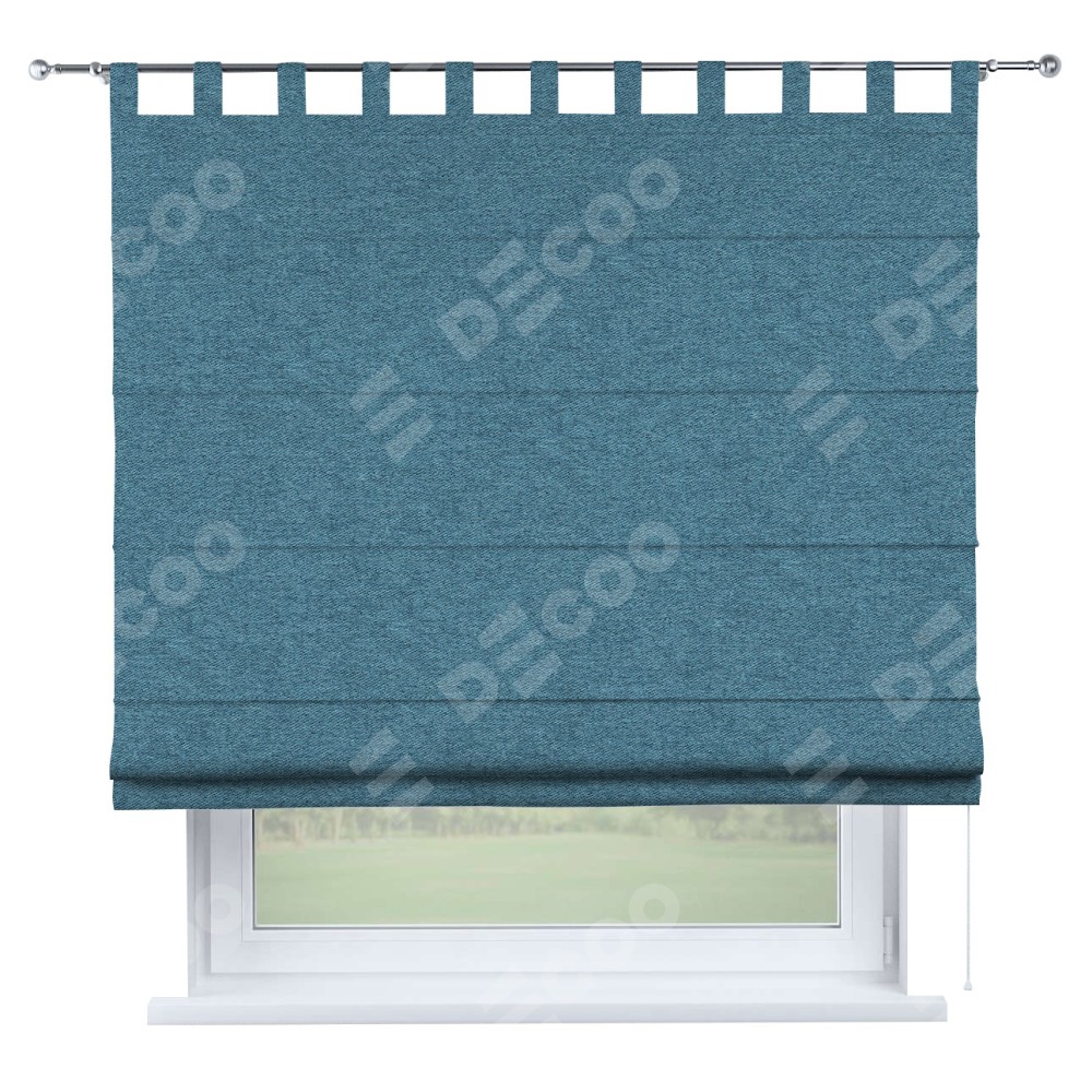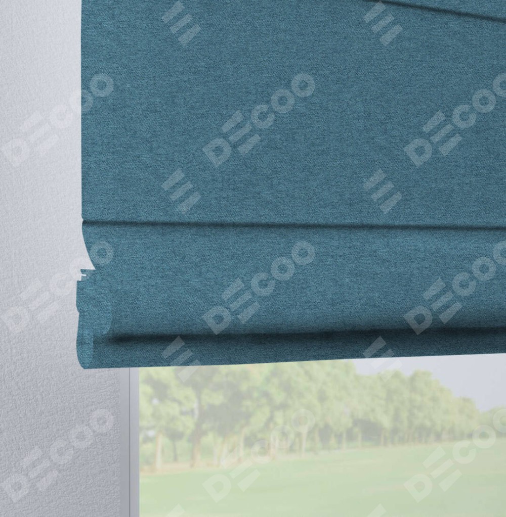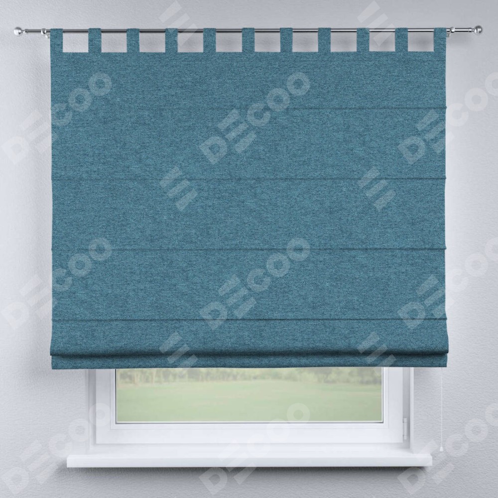 Римская штора на петлях «Кортин», ткань твид блэкаут, светло-синий