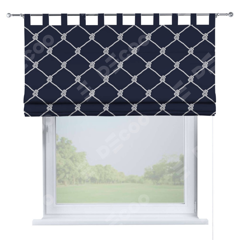 Римская штора производителя «Cortin», используется для проёма, пошита из ткани блэкаут с нанесением сублимационной печати «Морские веревки». Данная модель пошита на петлях, комплектуется на выбор круглым карнизом и подходит для монтажа на стену. Римская штора на петлях имеет простую систему регулировки высоты, отличительным преимуществом данной модели является простой способ монтажа. Достаточно повесить ее на трубу и штора готова!