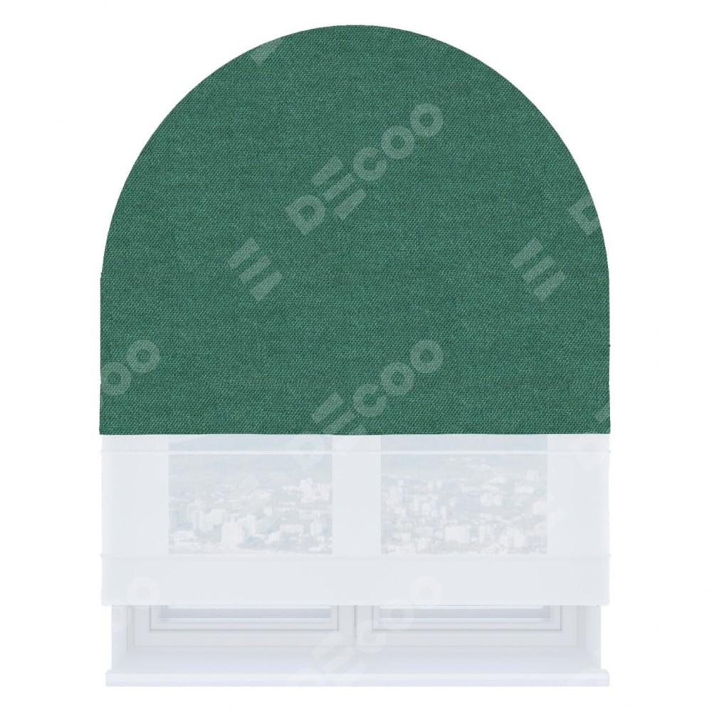 Римская штора день-ночь производителя «Cortin», используется для арочного проёма, пошита из двух полотен, с лицевой стороны лён димаут светло-бирюзовый артикул 91005, вторая ткань тюль (по стандарту комплектуется тюль белого цвета артикул V-01). Штора шьётся по индивидуальным размерам, для данного типа римской шторы возможная ширина от 60 до 300 см. Удобное управление каждой шторой отдельно.