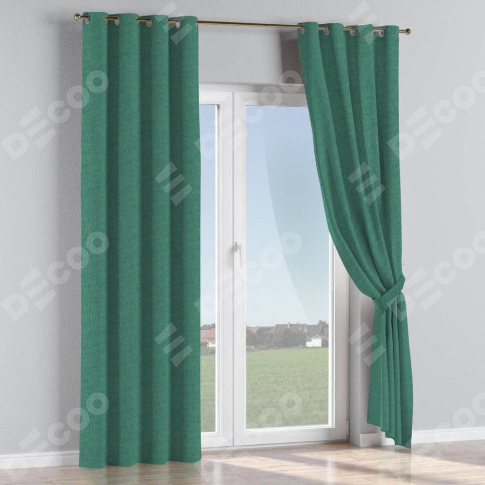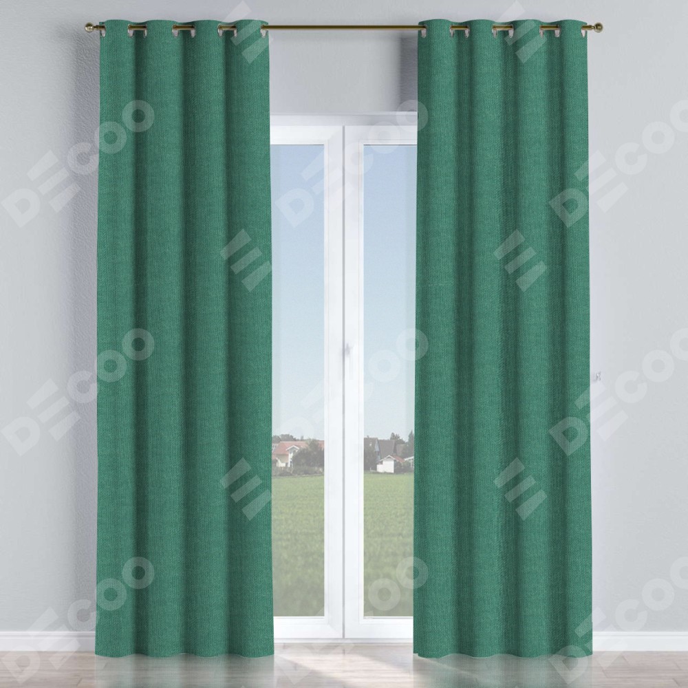 Комплект прямых штор, от производителя «Cortin», пошиты из ткани лён димаут светло-бирюзовый, артикул ткани 91005. Данная модель пошита на люверсах, комплектуется на выбор круглым карнизом и подходит для монтажа на стену или потолок. Прямые шторы на люверсах шьются по стандарту с коэффициентом 1/2 (на 100 см. ширины проёма 200 см. ширины ткани), отличительным преимуществом данной модели является простой способ монтажа. Достаточно повесить ее на трубу и штора готова!