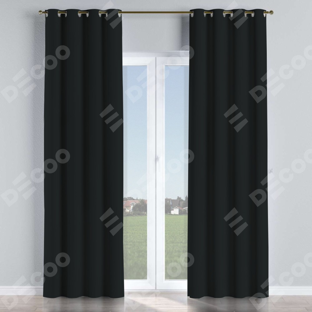 Комплект прямых штор, от производителя «Cortin», пошиты из ткани блэкаут однотонный черный, артикул ткани 91571−2. Данная модель пошита на люверсах, комплектуется на выбор круглым карнизом и подходит для монтажа на стену или потолок. Прямые шторы на люверсах шьются по стандарту с коэффициентом 1/2 (на 100 см. ширины проёма 200 см. ширины ткани), отличительным преимуществом данной модели является простой способ монтажа. Достаточно повесить ее на трубу и штора готова!