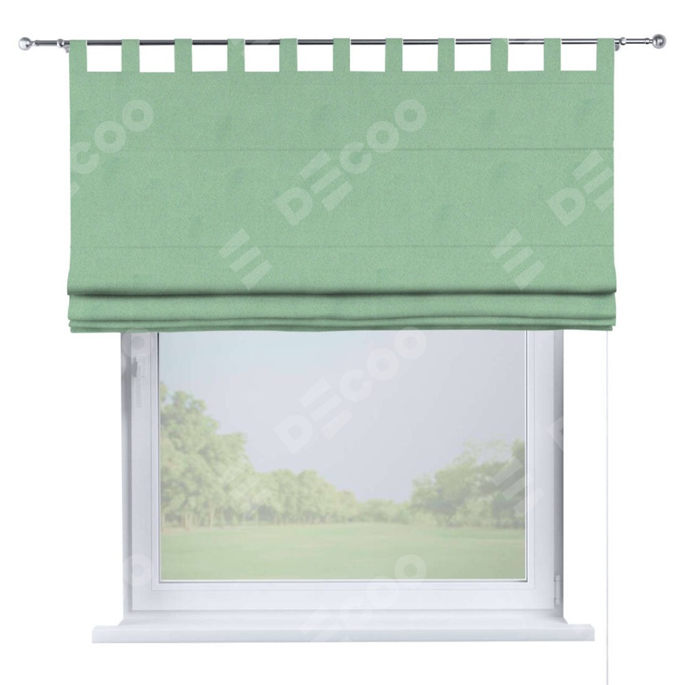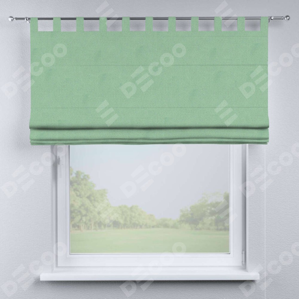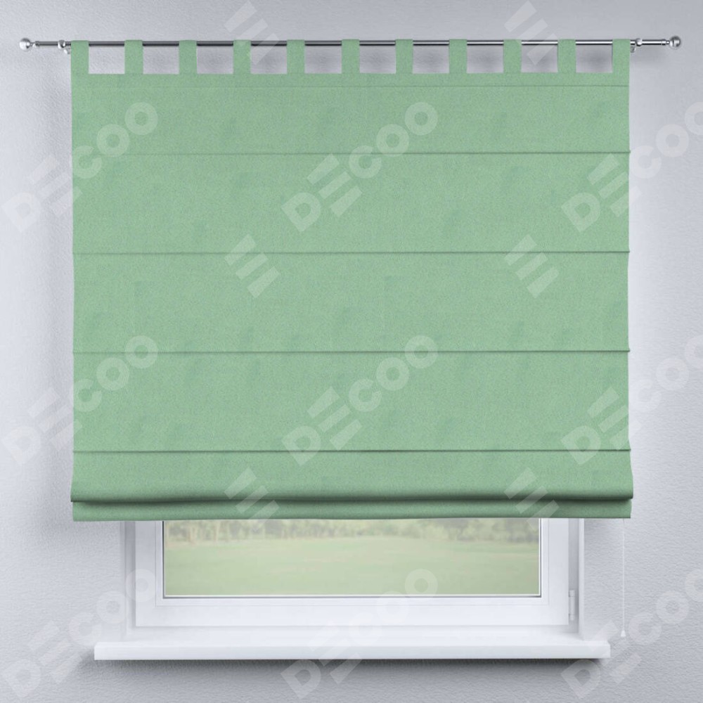 Римская штора производителя «Cortin», используется для проёма, пошита из ткани блэкаут однотонный ментоловый, артикул ткани 91572−1. Данная модель пошита на петлях, комплектуется на выбор круглым карнизом и подходит для монтажа на стену. Римская штора на петлях имеет простую систему регулировки высоты, отличительным преимуществом данной модели является простой способ монтажа. Достаточно повесить ее на трубу и штора готова!