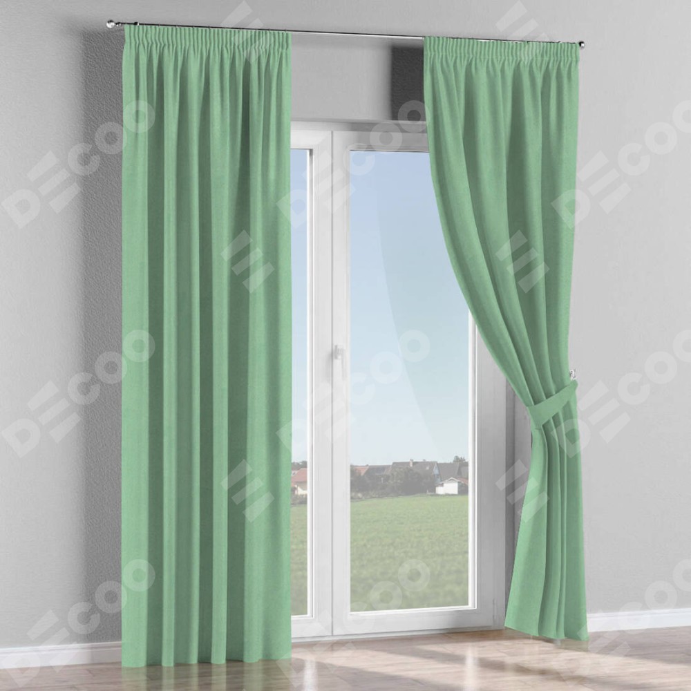 Комплект прямых штор, от производителя «Cortin», пошиты из ткани блэкаут однотонный ментоловый, артикул ткани 91572−1. С изнаночной стороны в верхней части штор пристрачивается шторная лента с декоративными складками «Карандаш». Для создания элегантных складок прямые шторы шьются по стандарту с коэффициентом 1:2 (на 100 см. ширины проёма 200 см. ширины ткани).
