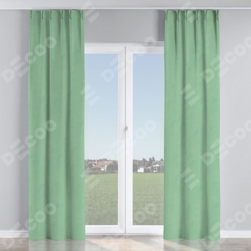 Комплект прямых штор, от производителя «Cortin», пошиты из ткани блэкаут однотонный ментоловый, артикул ткани 91572−1. С изнаночной стороны в верхней части штор пристрачивается шторная лента с декоративными складками «Кустик». Для создания элегантных складок прямые шторы шьются по стандарту с коэффициентом 1:2 (на 100 см. ширины проёма 200 см. ширины ткани).