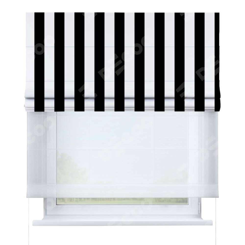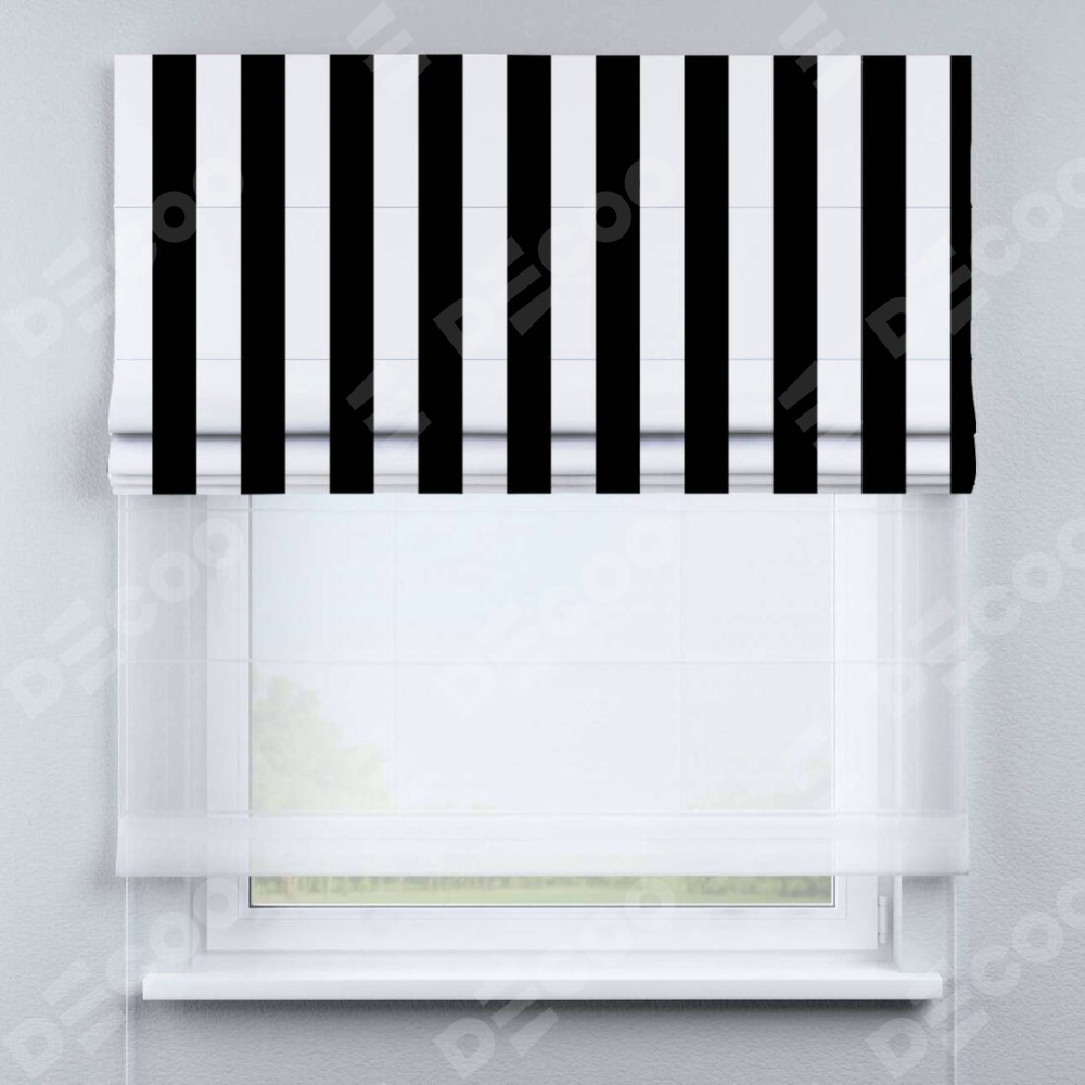 Римская штора «Кортин» день-ночь «Черное и белое» представлена к заказу по индивидуальным размерам. Её артикул: 26714. Стоимость будет зависеть от размеров и стартует от 5 300 руб. В интернет-магазине Decoo вы сможете выбрать товар в любых размерных вариациях.
