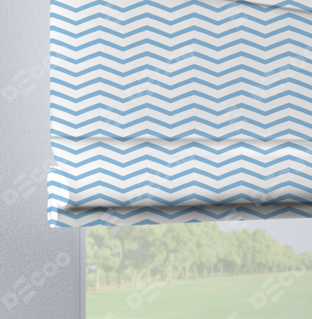 Римская штора производителя «Cortin», используется для проёма, пошита из ткани блэкаут с нанесением сублимационной печати «Зигзаг мелкий». Данная модель пошита на петлях, комплектуется на выбор круглым карнизом и подходит для монтажа на стену. Римская штора на петлях имеет простую систему регулировки высоты, отличительным преимуществом данной модели является простой способ монтажа. Достаточно повесить ее на трубу и штора готова!