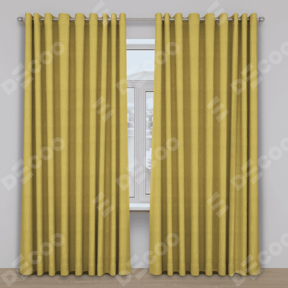 Шторы на люверсах ткань твид блэкаут, пыльная горчица