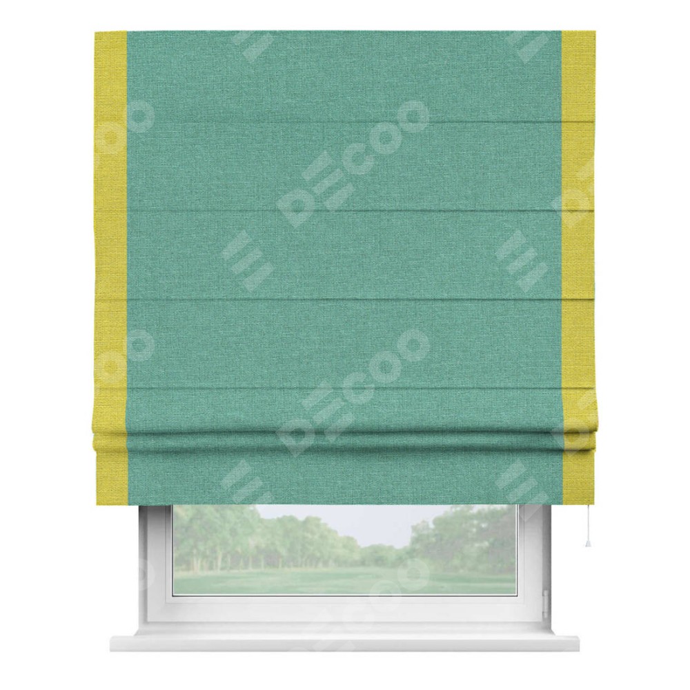 Римская штора «Кортин» с кантом Стрим Дуо, для проема, лён светло-бирюзовый