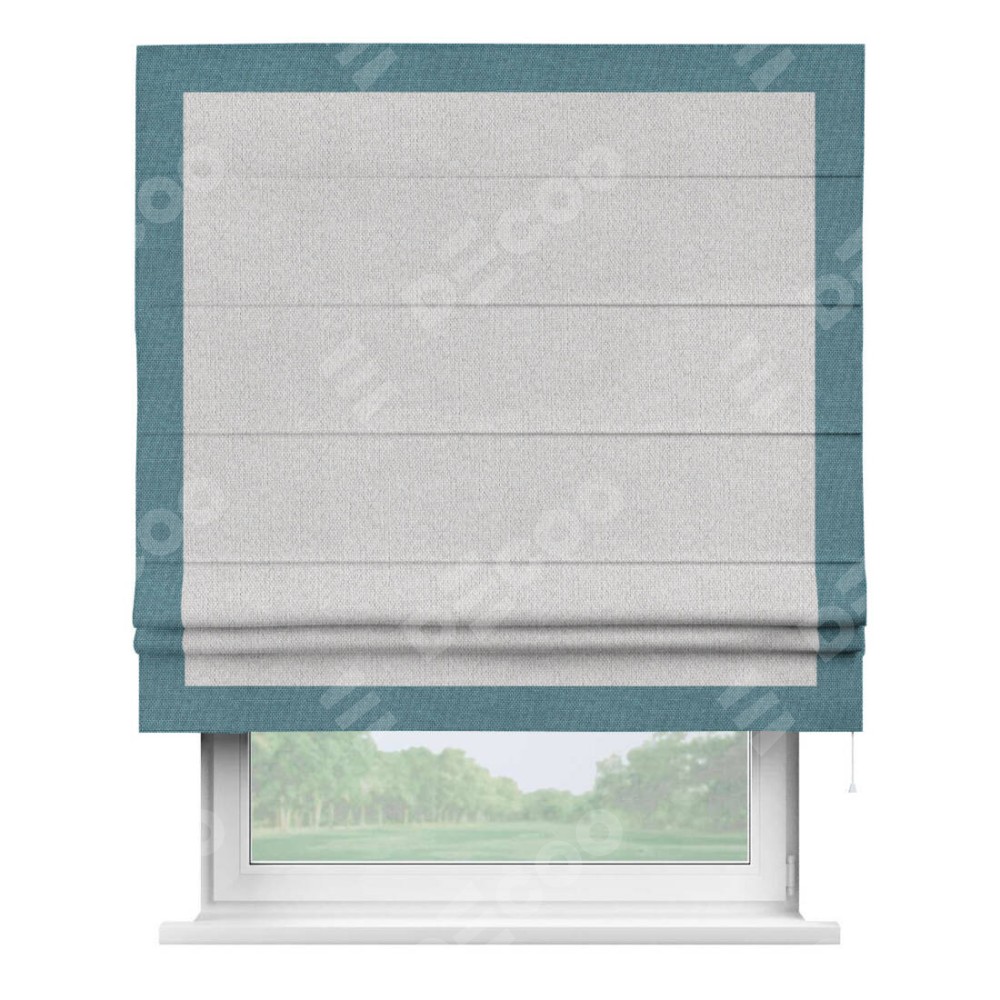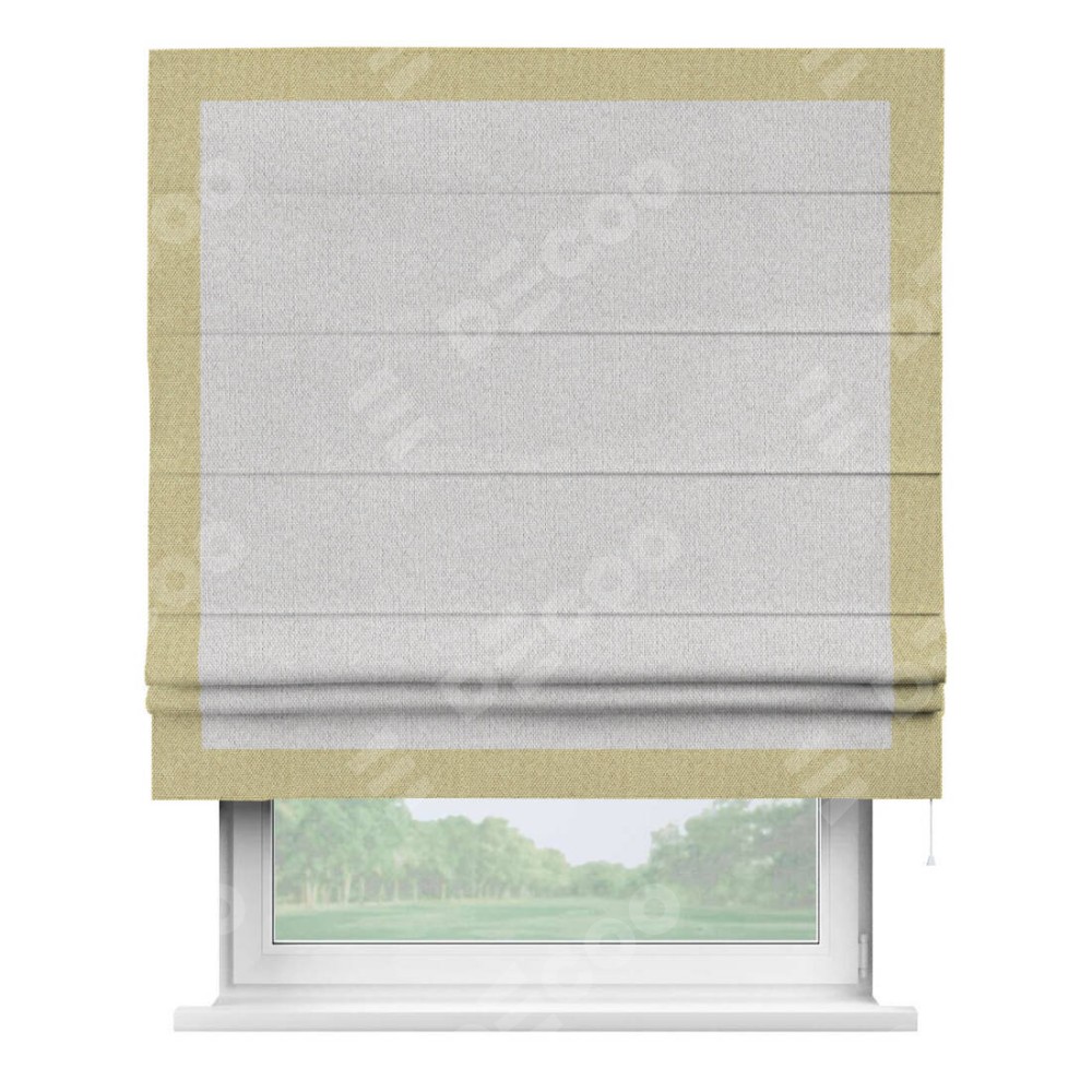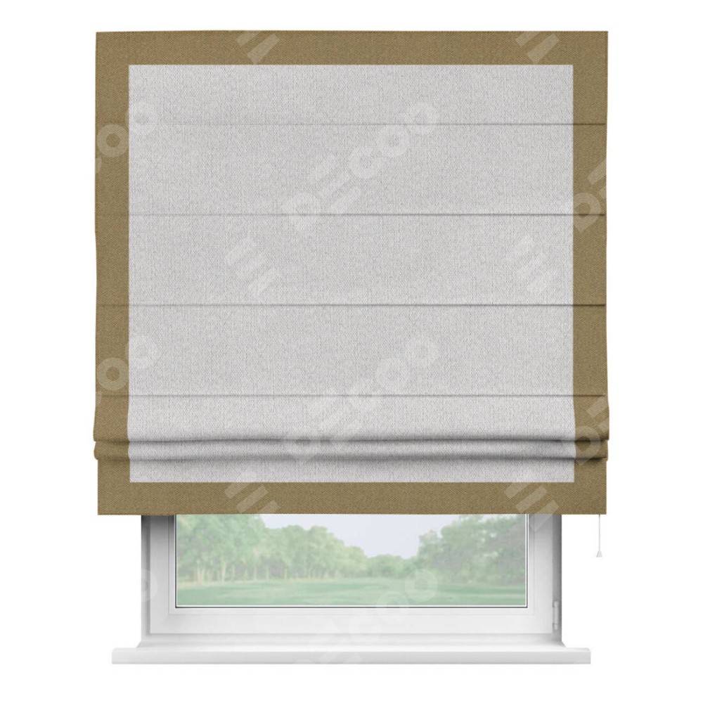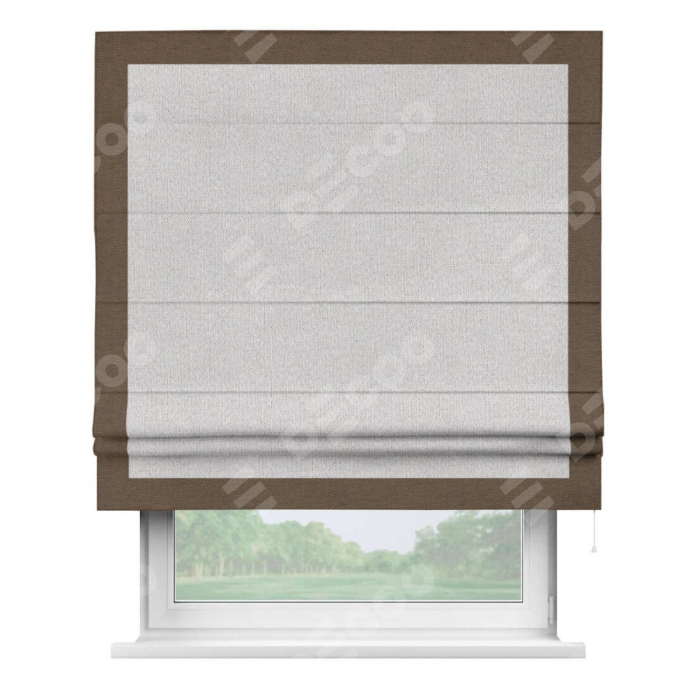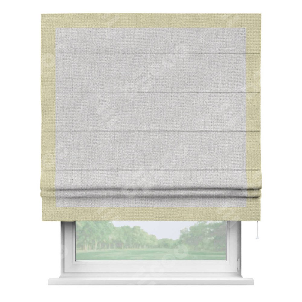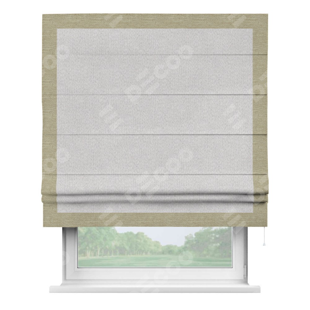 Римская штора производителя «Cortin», используется для проёма, пошита из ткани лён димаут светло-бежевый, артикул 90993. Отделка шторы кантом «Чесс», ткань для канта используется из льна димаут разной расцветки на выбор. Имеет универсальный механизм и подходит для монтажа: на потолок, на стену и в нишу.