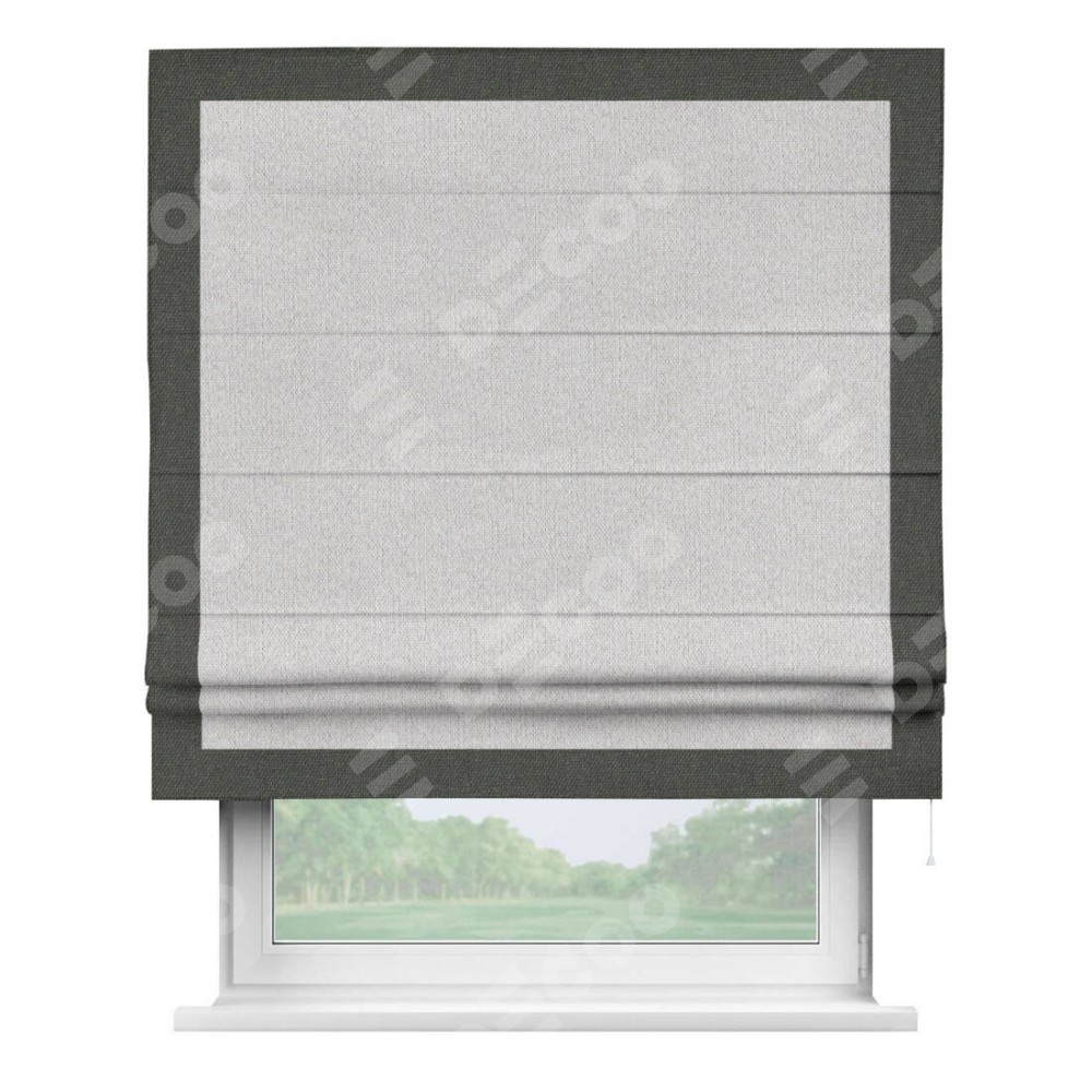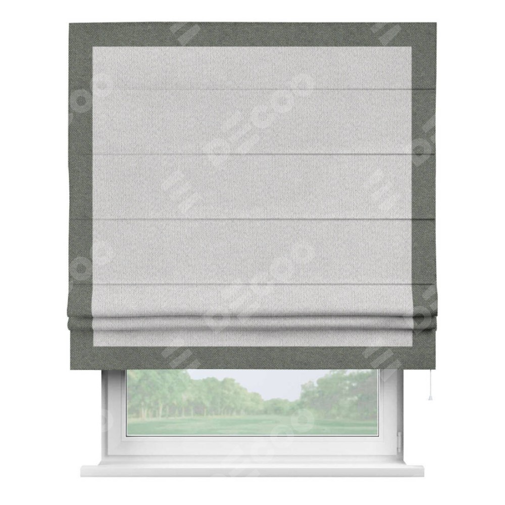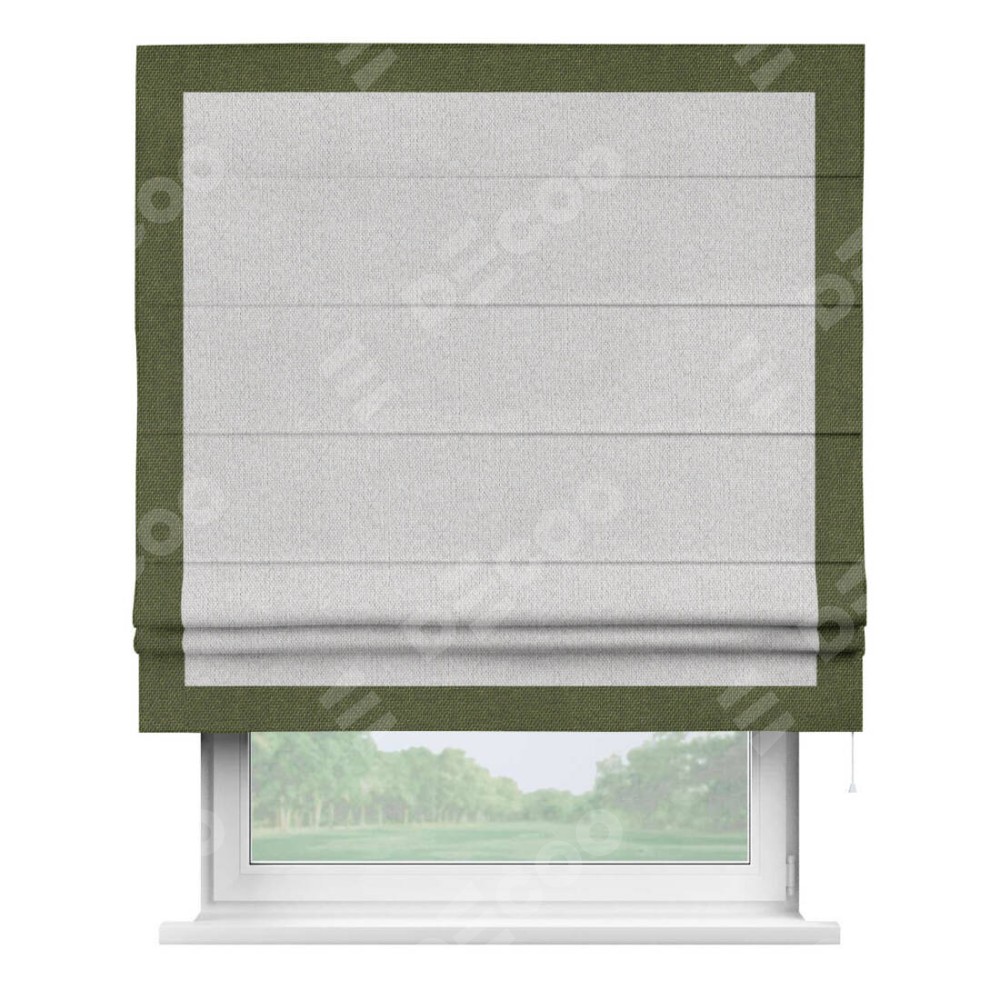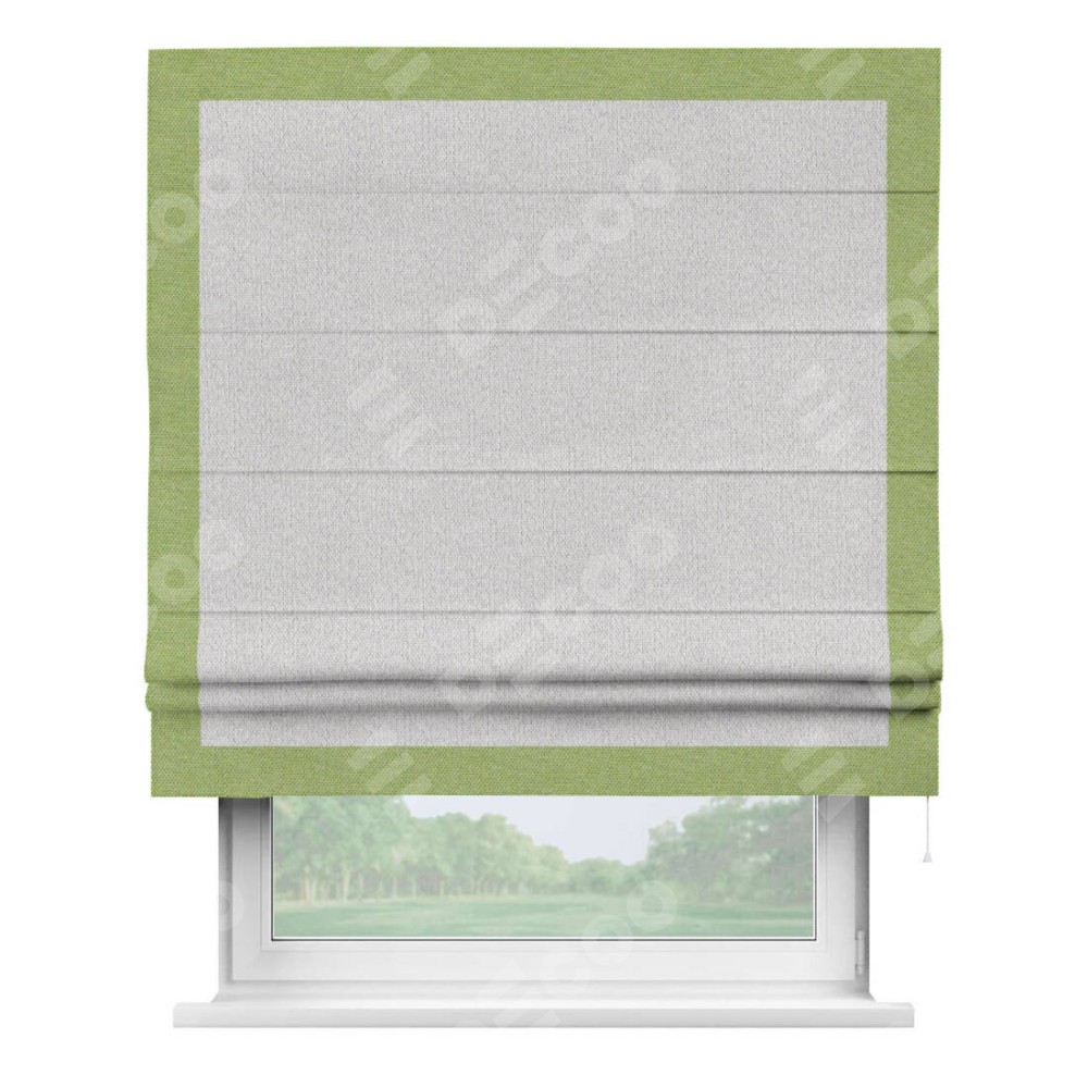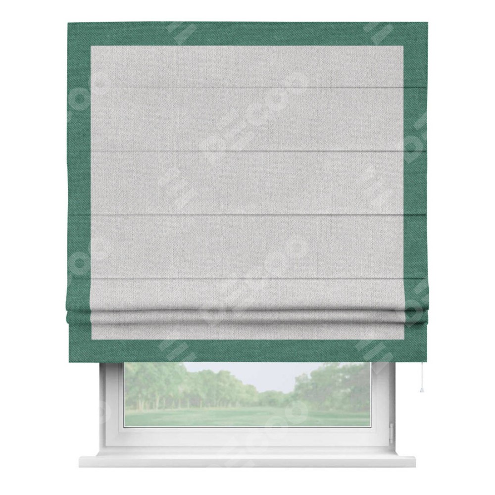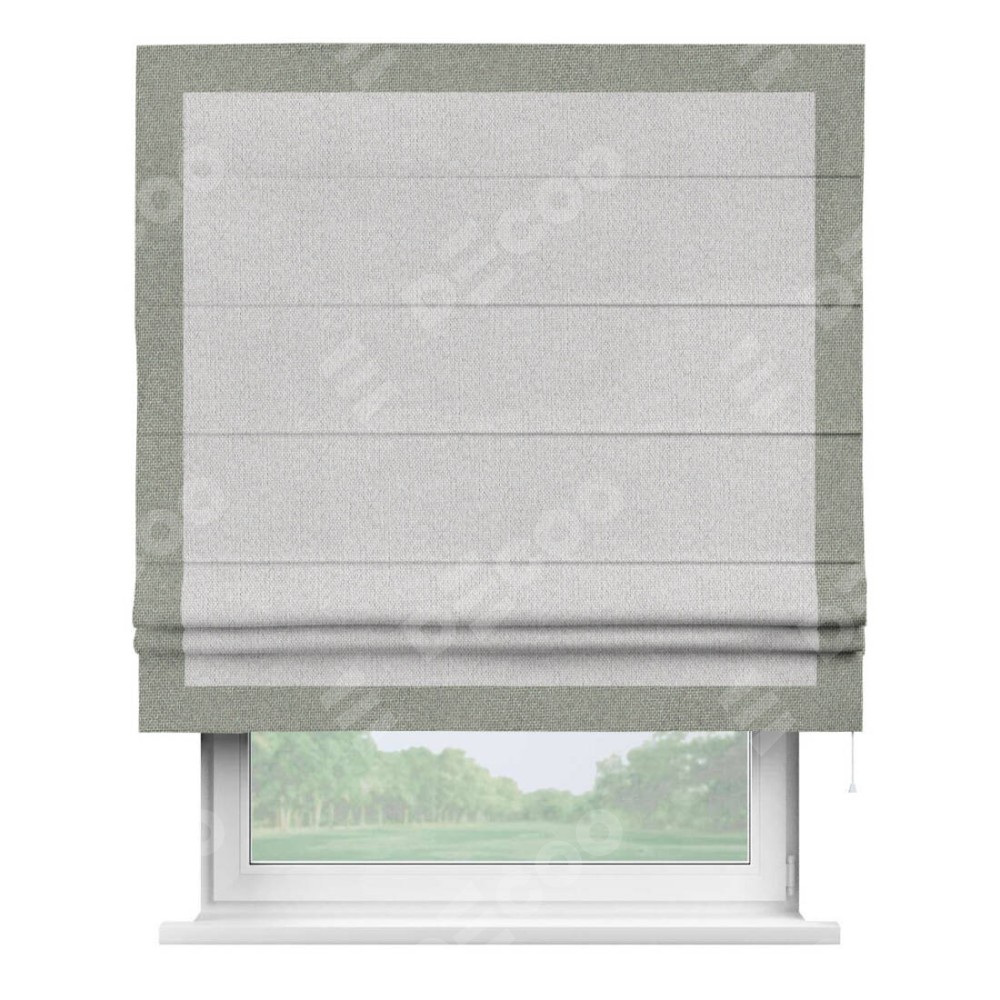 Римская штора производителя «Cortin», используется для проёма, пошита из ткани лён димаут светло-бежевый, артикул 90993. Отделка шторы кантом «Чесс», ткань для канта используется из льна димаут разной расцветки на выбор. Имеет универсальный механизм и подходит для монтажа: на потолок, на стену и в нишу.