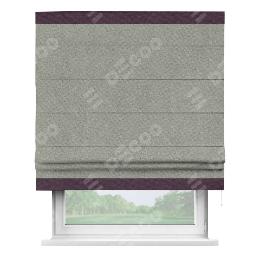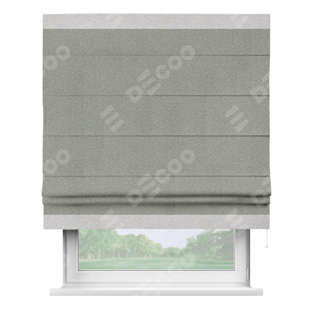 Римская штора производителя «Cortin», используется для проёма, пошита из ткани лён димаут серый, артикул 91009. Отделка шторы кантом «Горизонт», ткань для канта используется из льна димаут разной расцветки на выбор. Имеет универсальный механизм и подходит для монтажа: на потолок, на стену и в нишу.