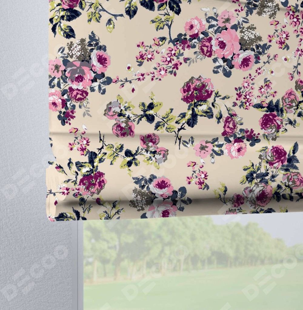 Римская штора на петлях «Россыпь розовых цветов» отлично подойдёт для интерьера: в офис, в спальню и на балкон.