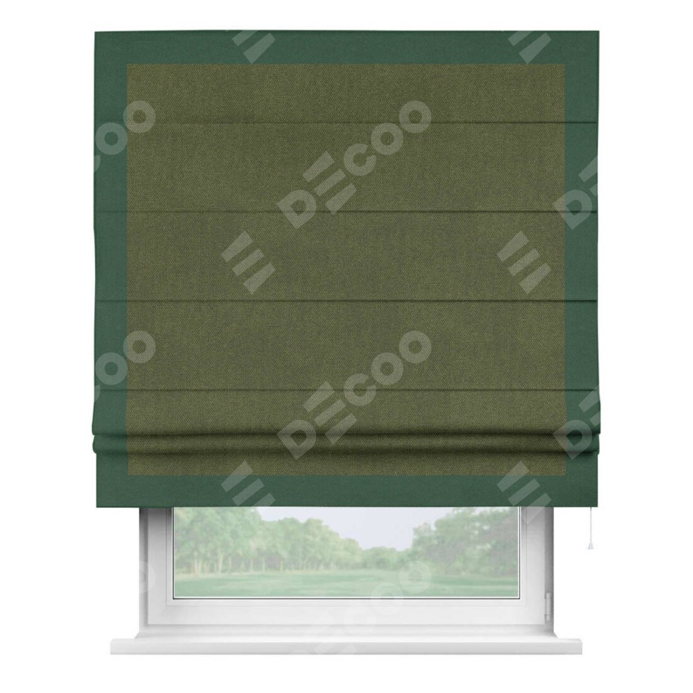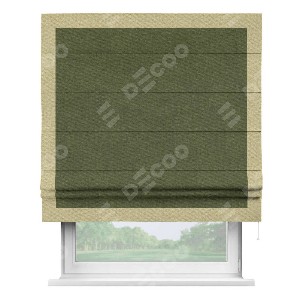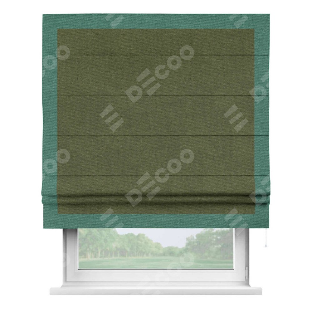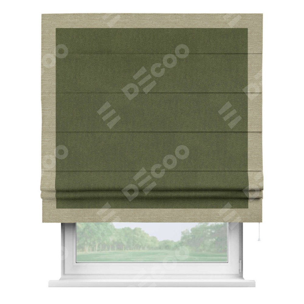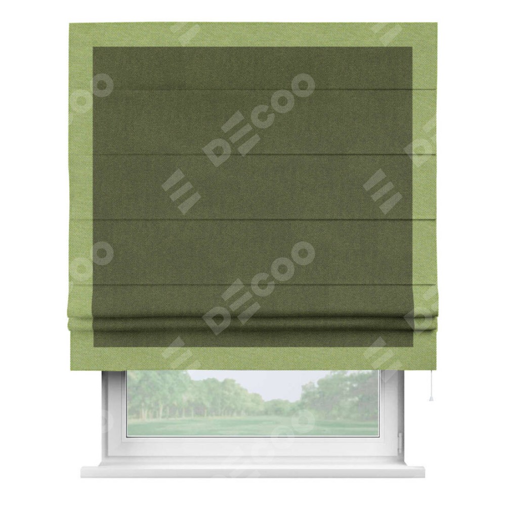 Римская штора «Кортин» для проема, лён димаут салатовый с кантом Чесс