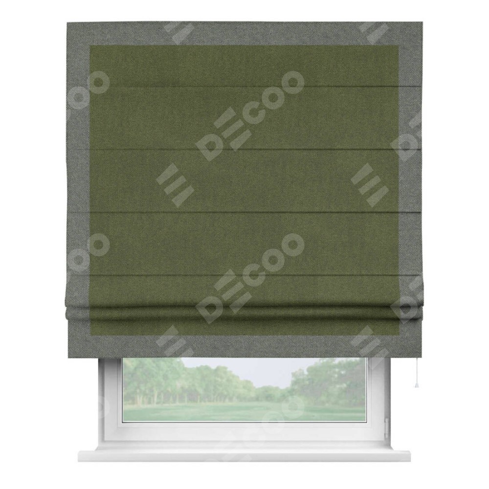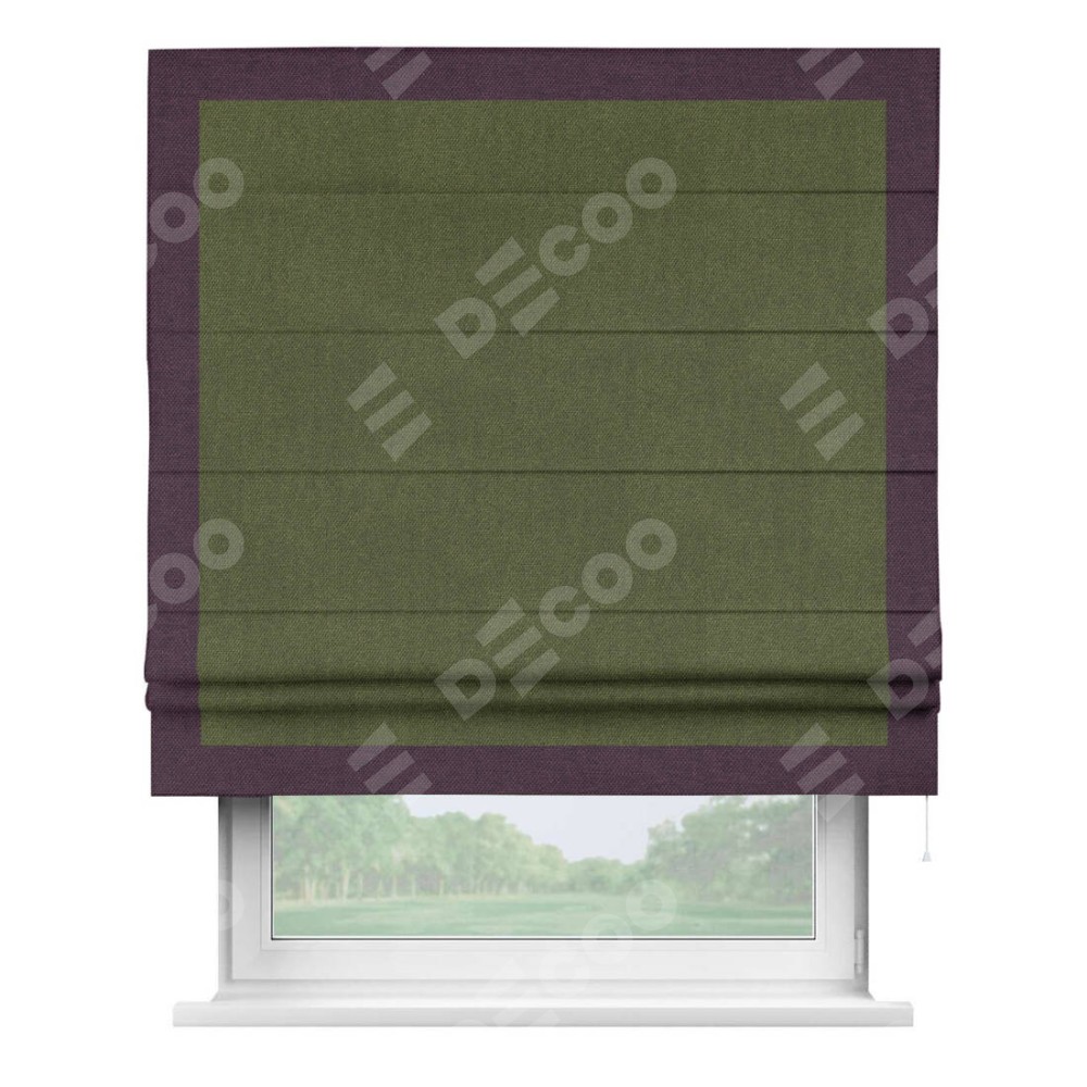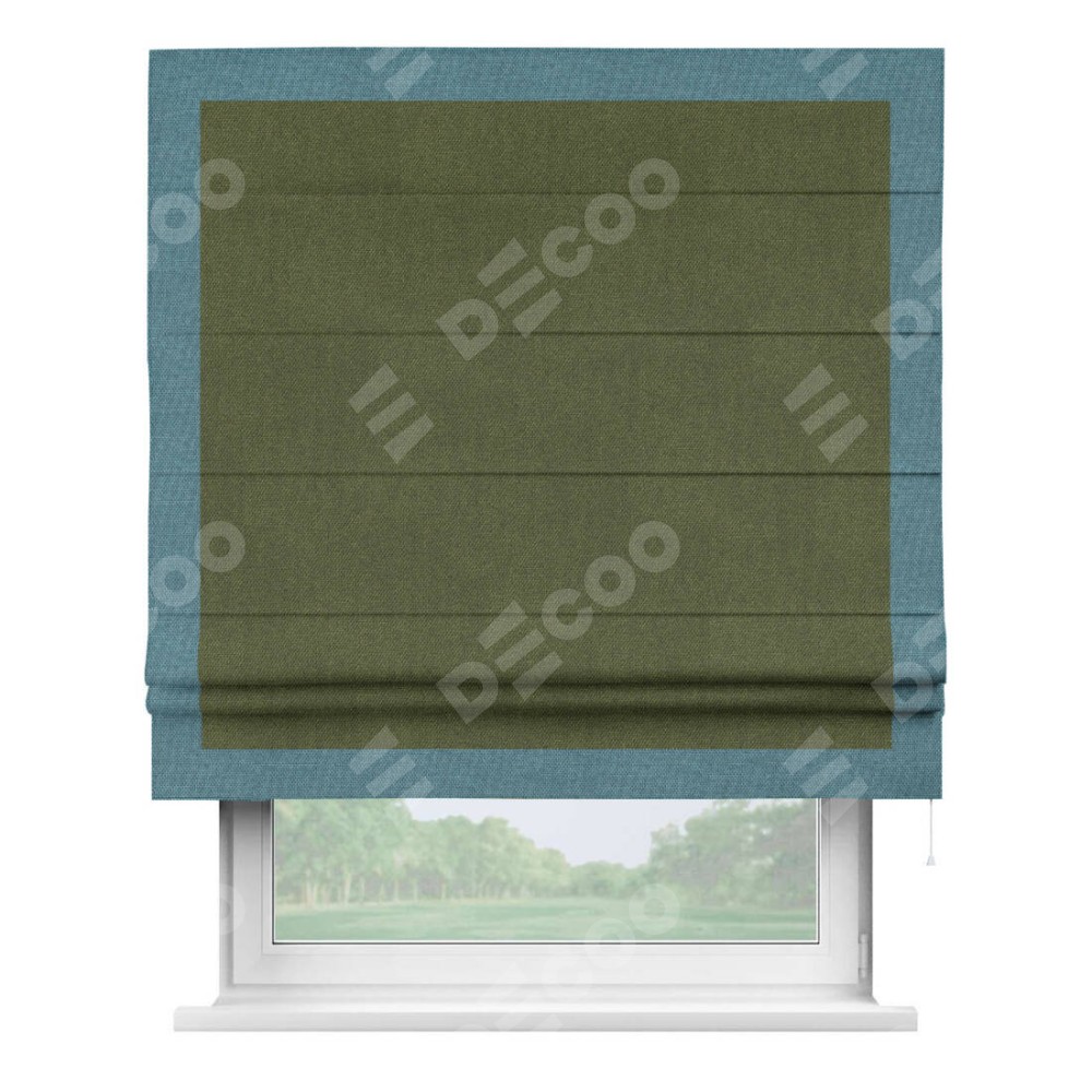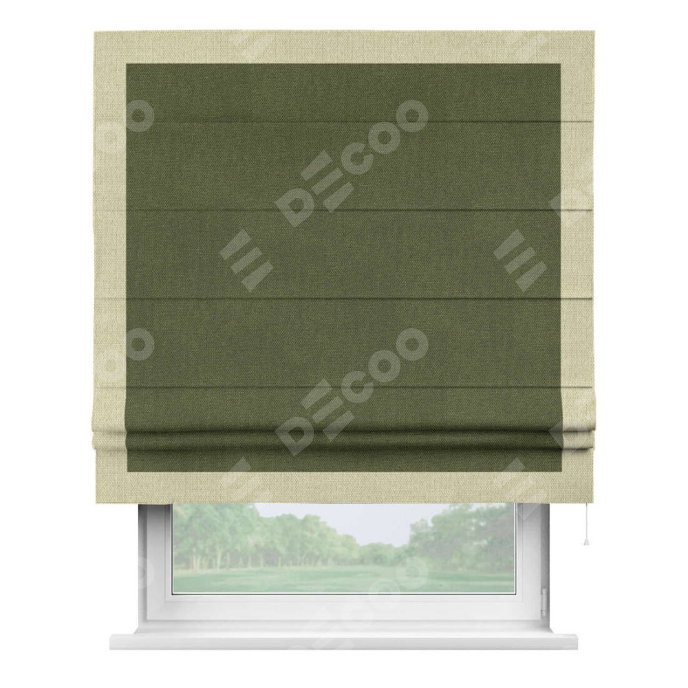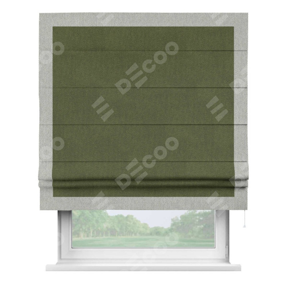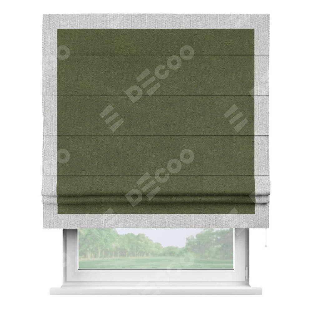 Римская штора «Кортин» для проема, лён димаут салатовый с кантом Чесс