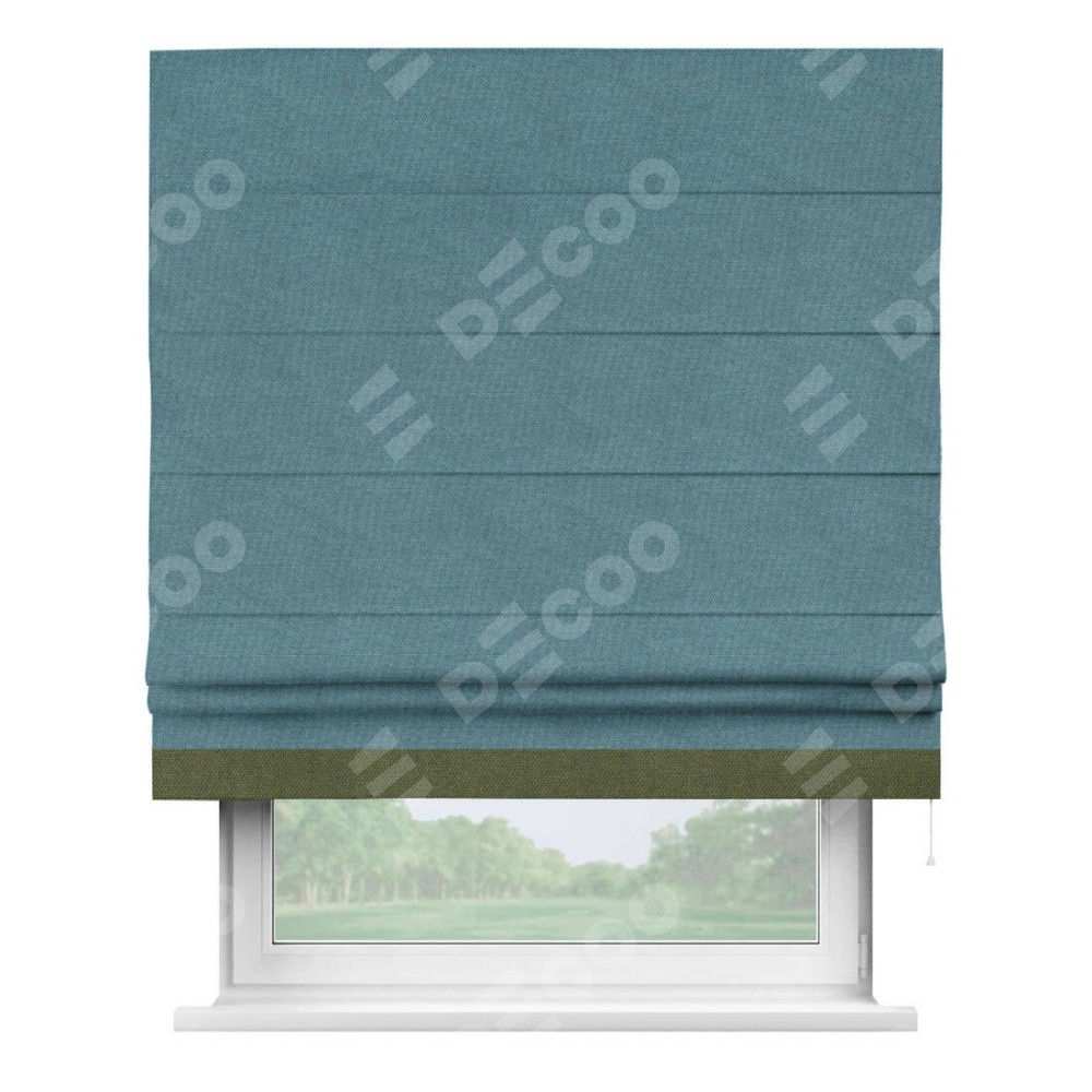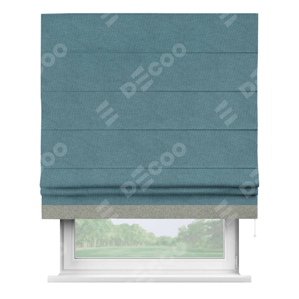 Римская штора «Кортин» для проема, лён димаут светло-синий с кантом Джестер