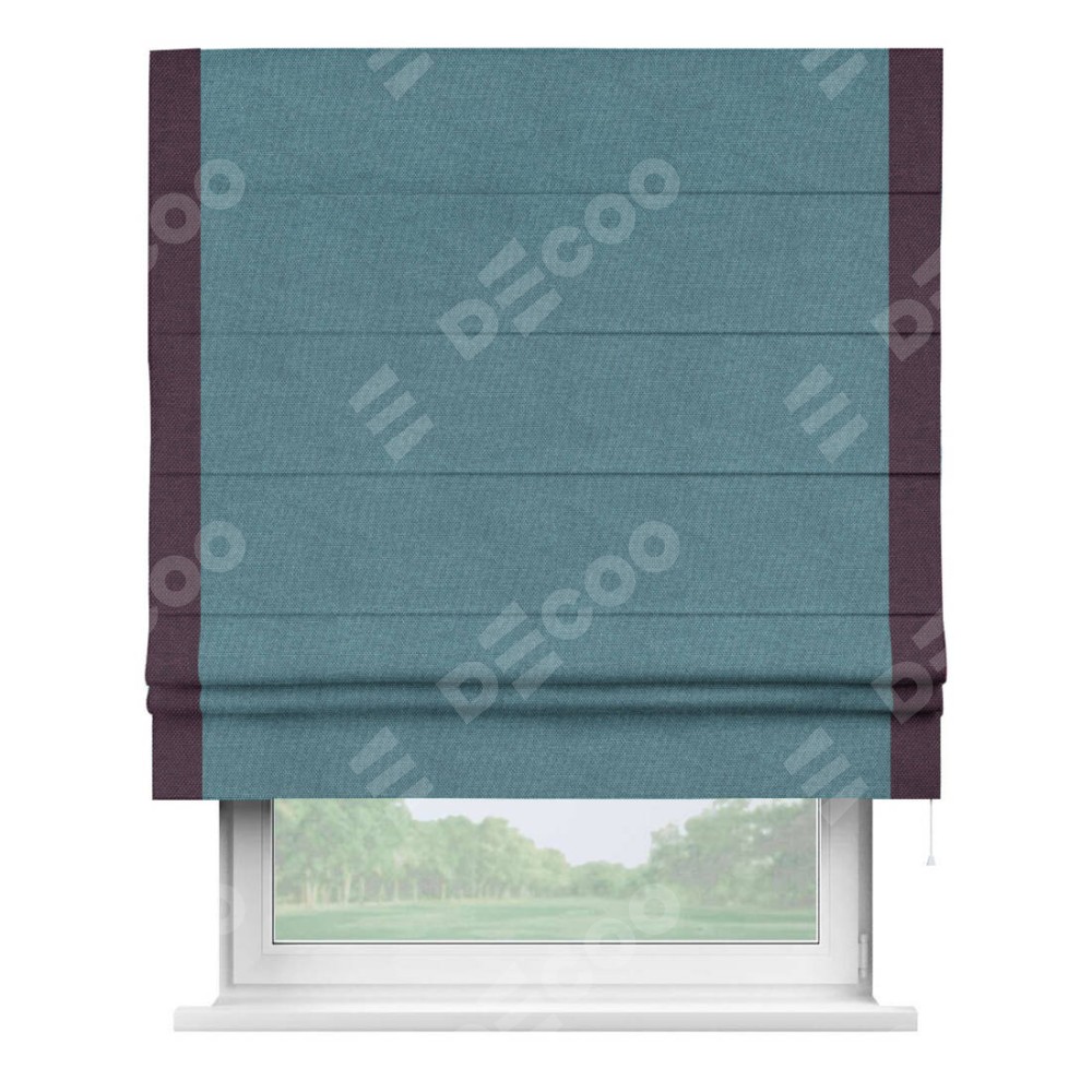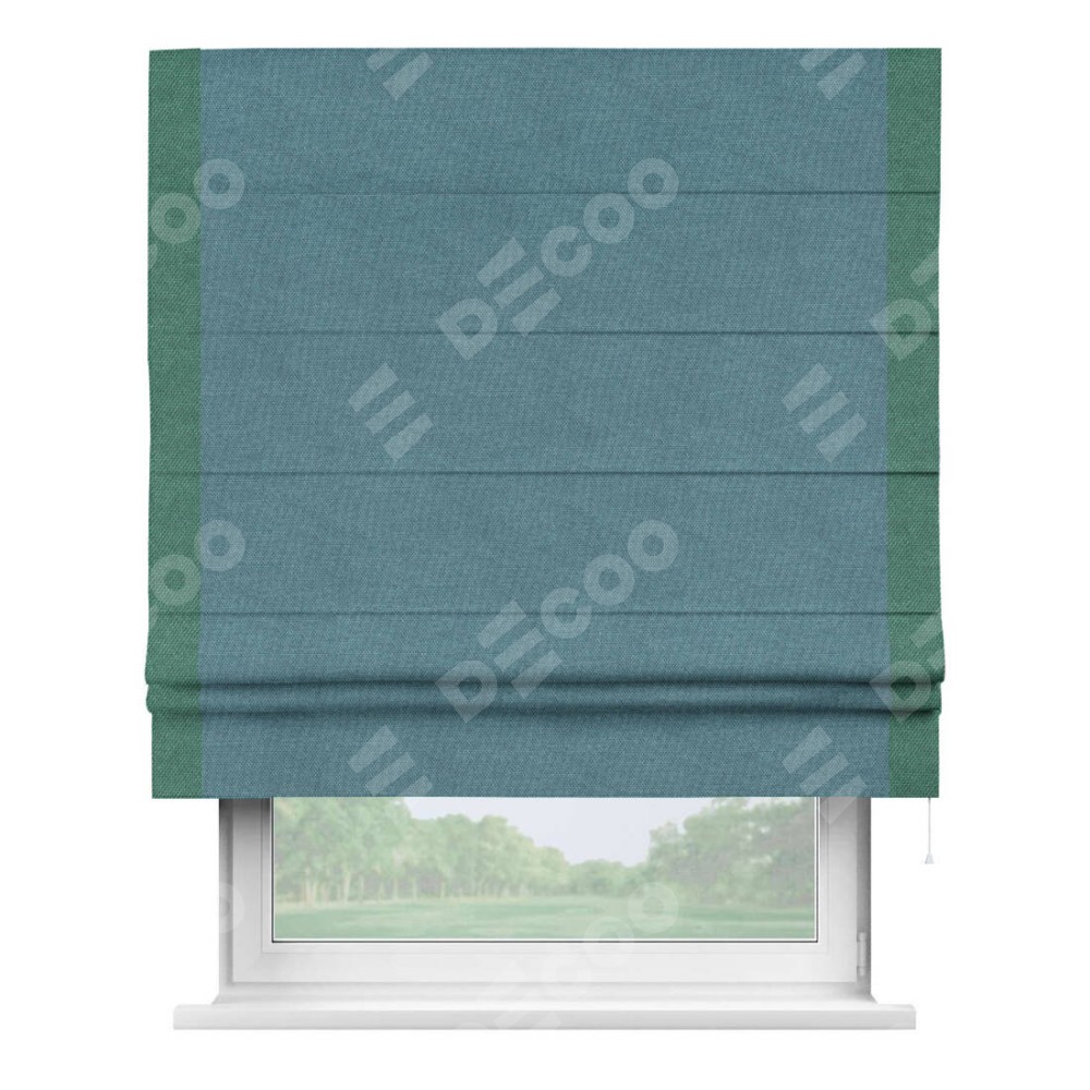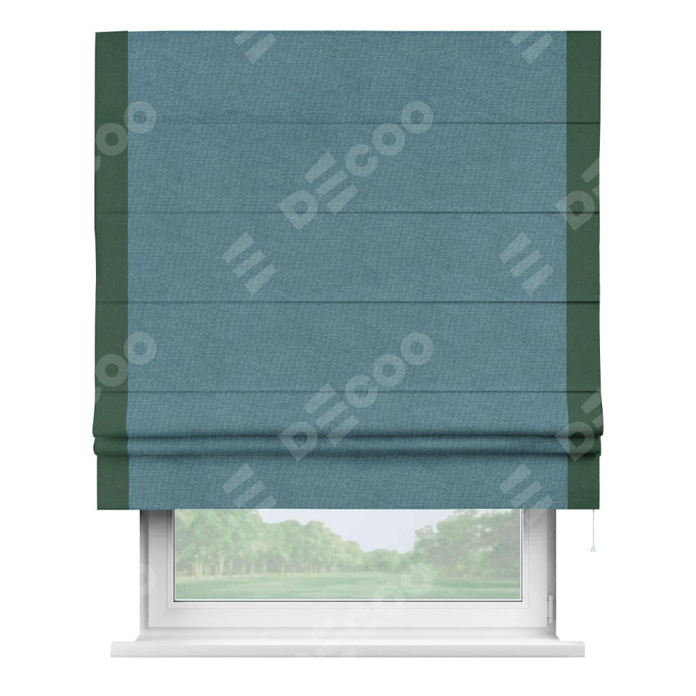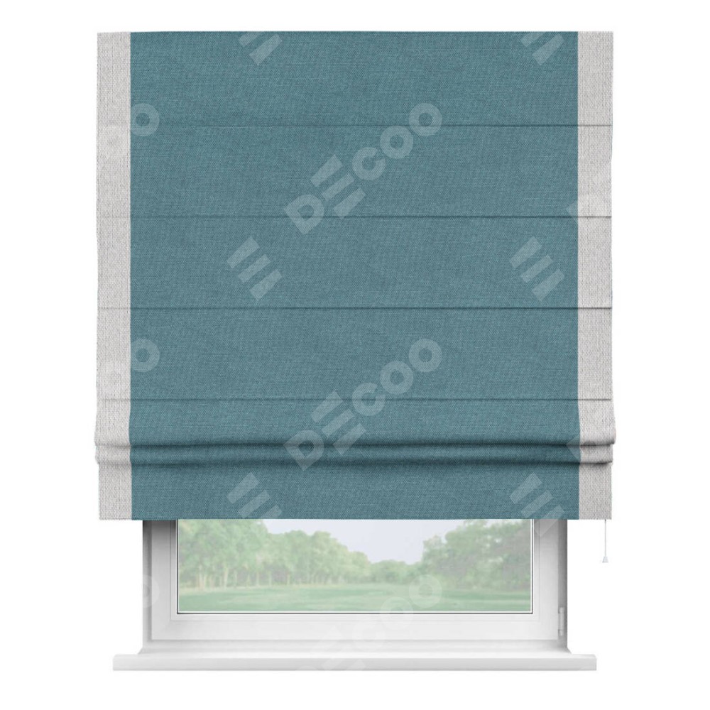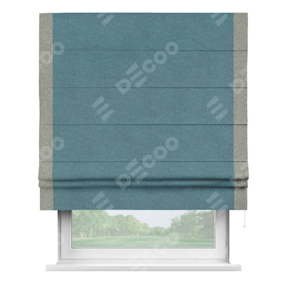 Римская штора «Кортин» для проема, лён димаут светло-синий с кантом Стрим Дуо