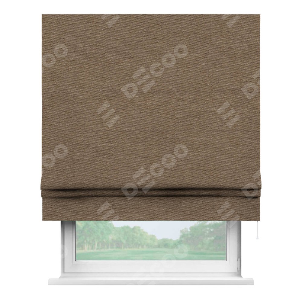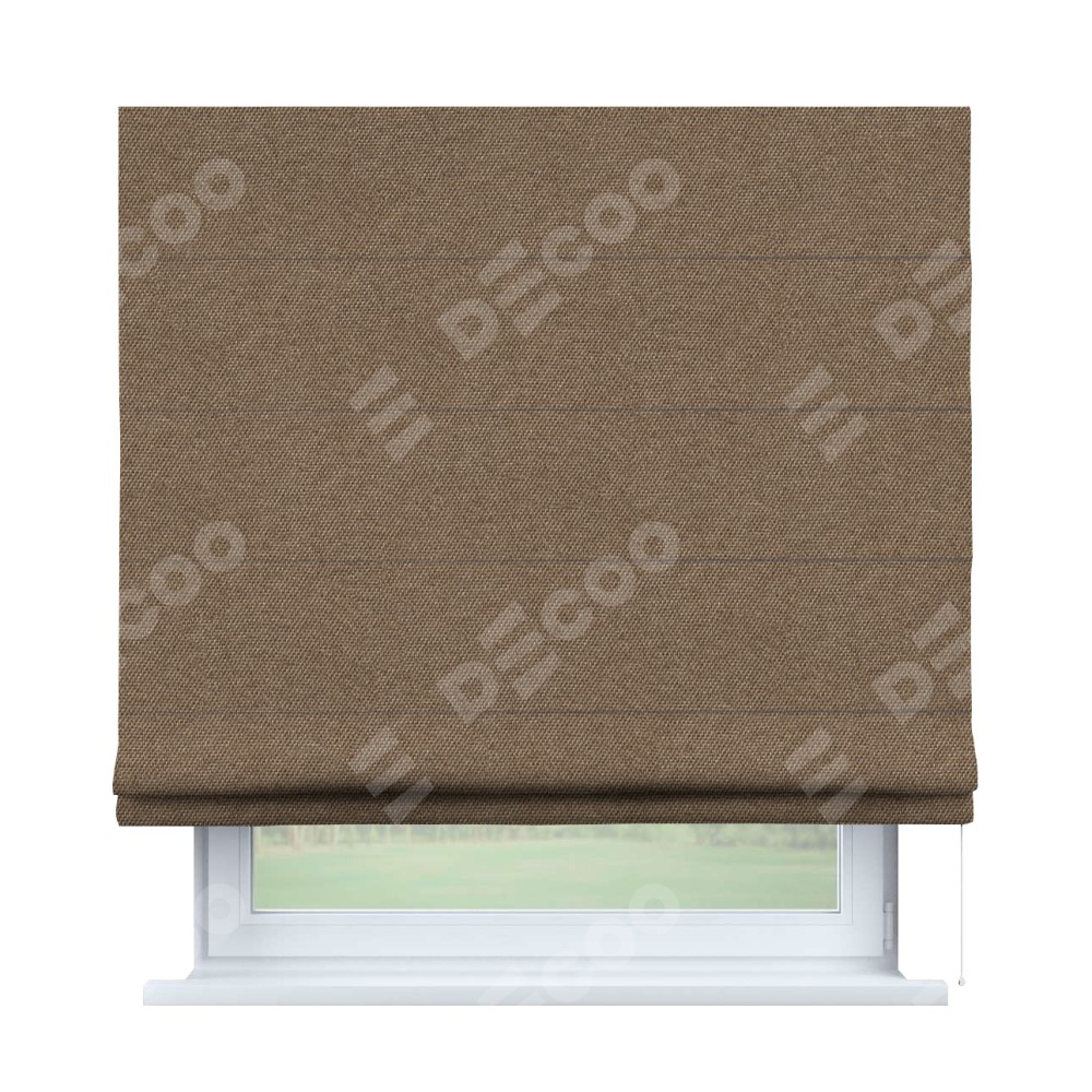 Классическая римская штора производителя «Cortin», пошита из ткани лён димаут коричневый, артикул: 90996. Имеет универсальный механизм и подходит для монтажа: на потолок, на стену и в нишу.