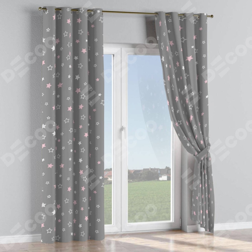 Комплект штор на люверсах «Розовый звездопад» отлично подойдёт для интерьера для дачи, шторы в спальню и шторы в детскую.
