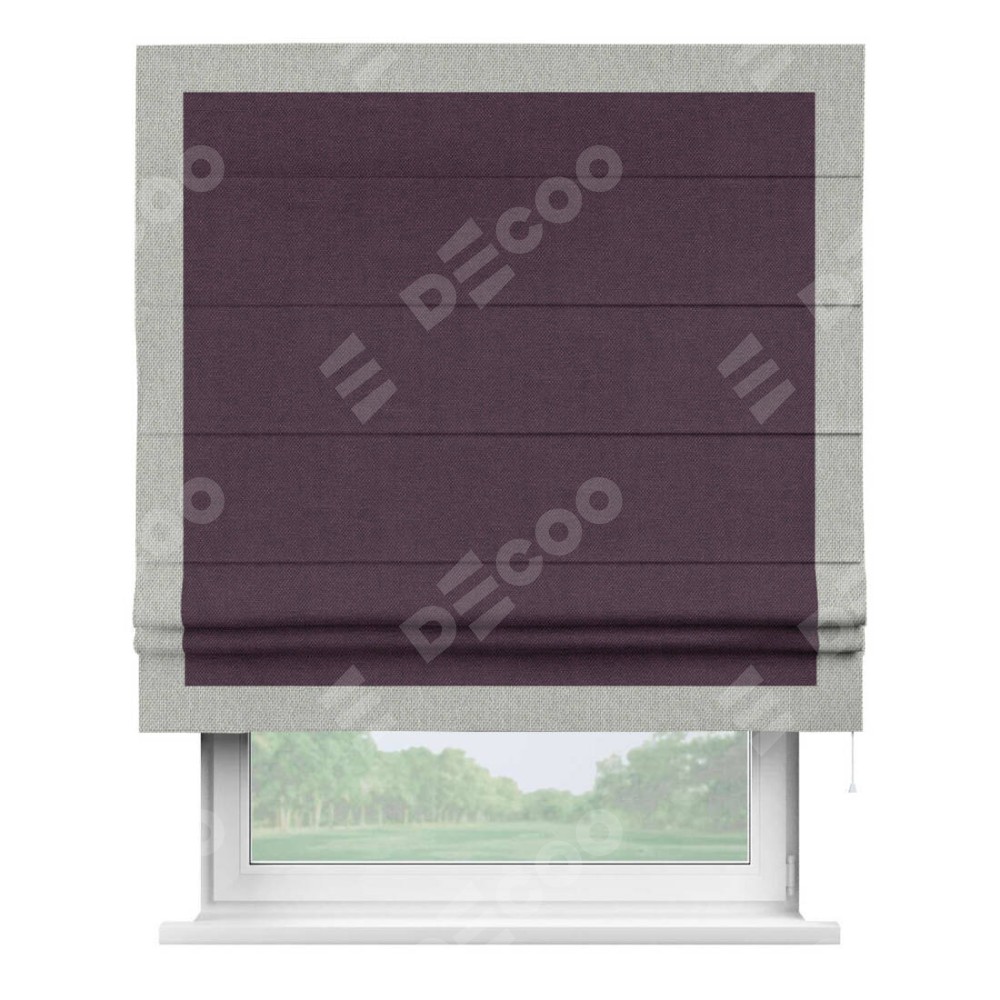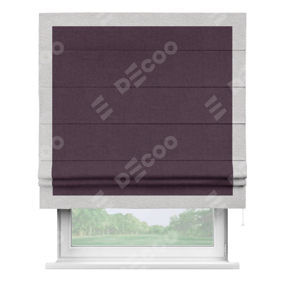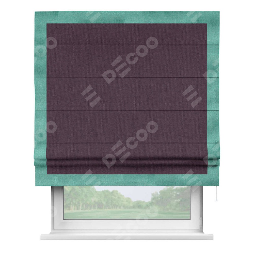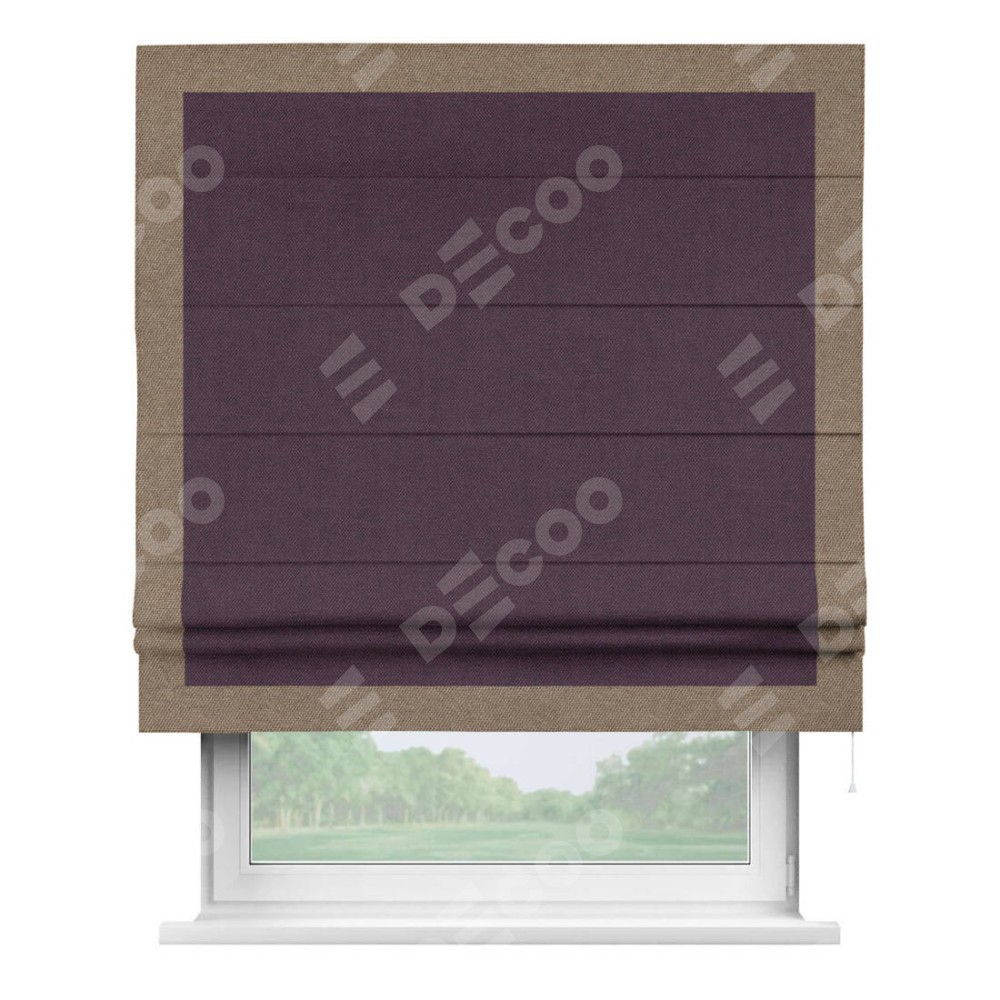 Римская штора «Кортин» для проема, лён димаут фиолетовый с кантом Чесс
