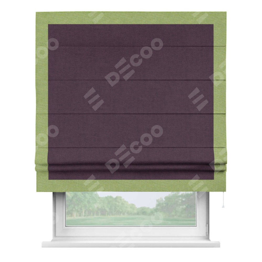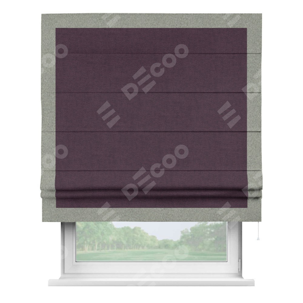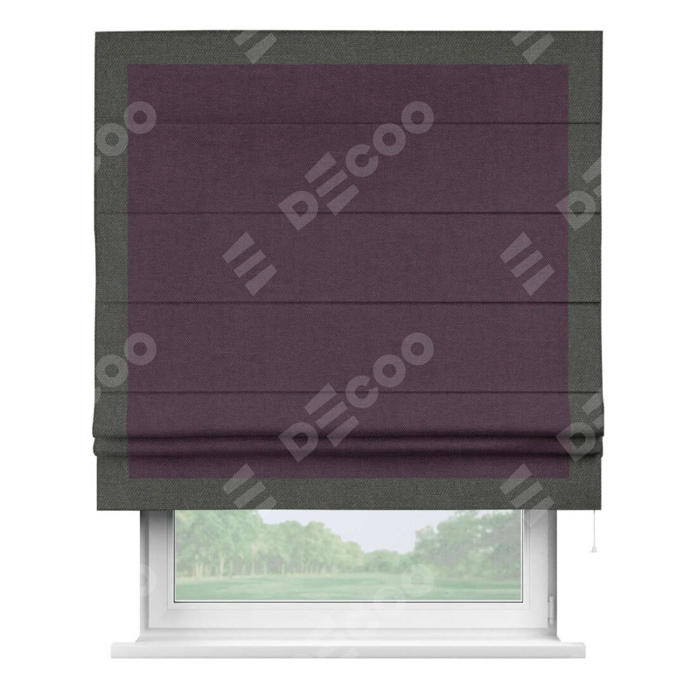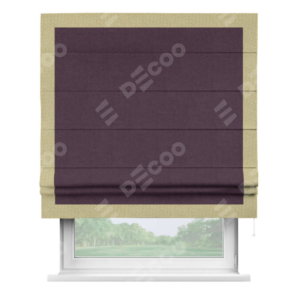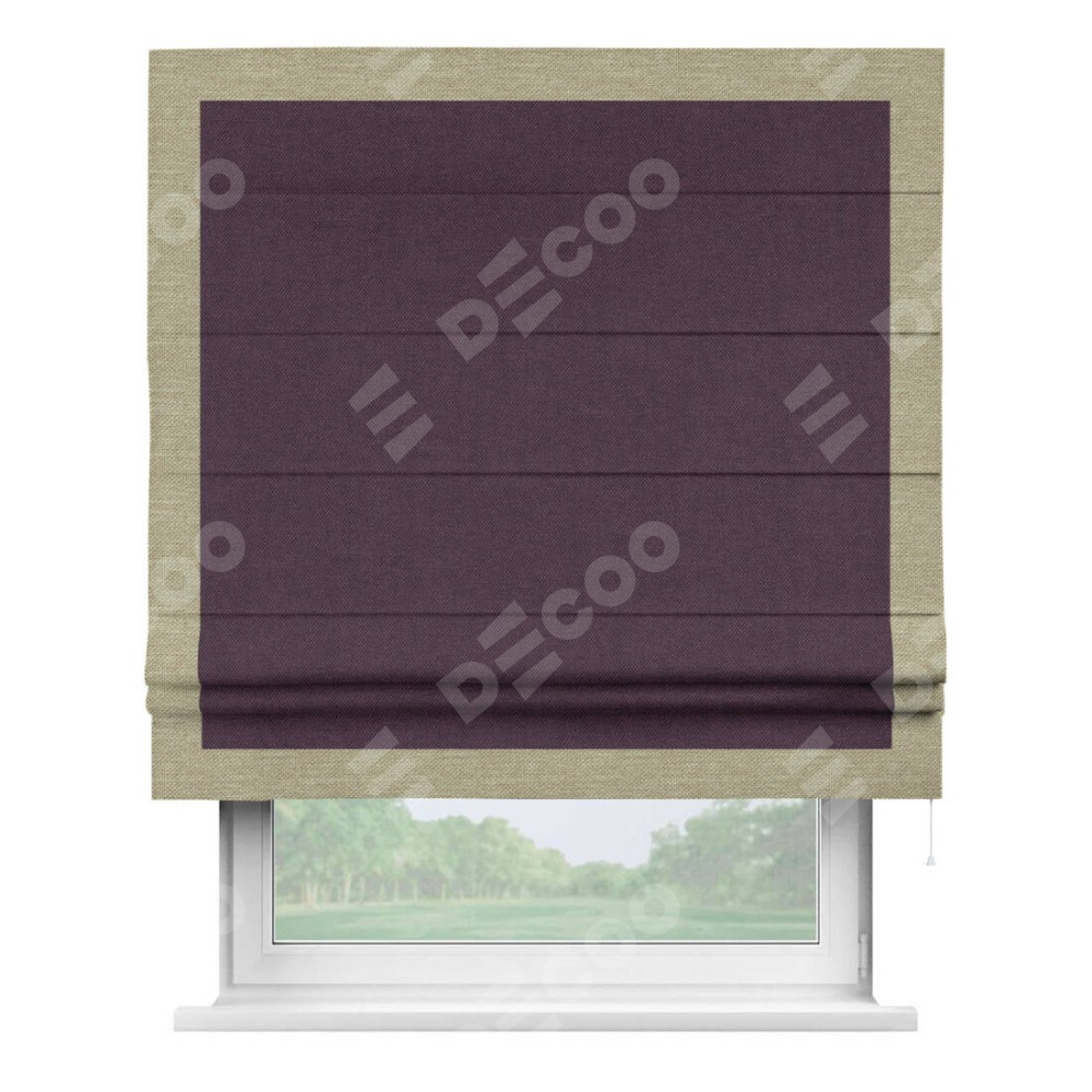 Римская штора «Кортин» для проема, лён димаут фиолетовый с кантом Чесс