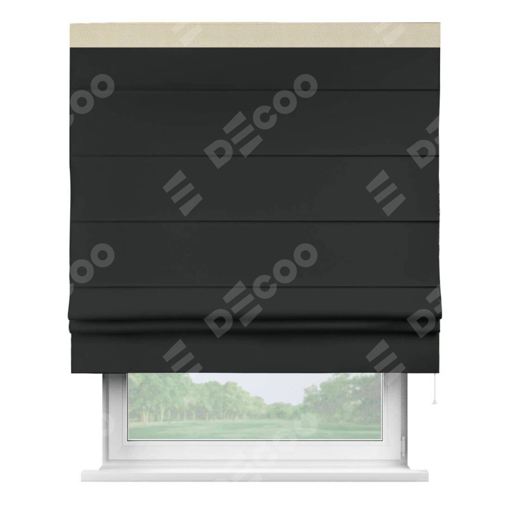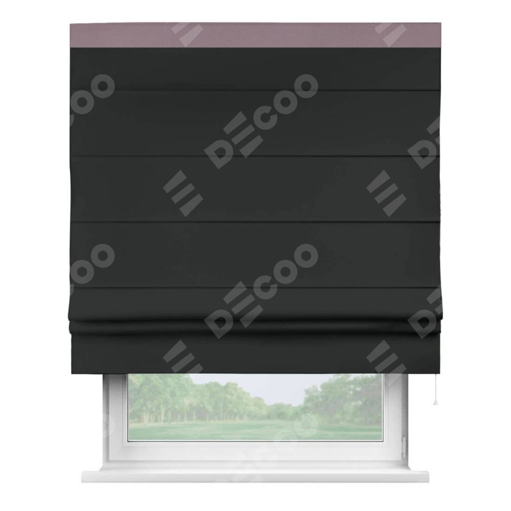 Римская штора «Кортин» для проема, блэкаут однотонный черный с кантом Кинг