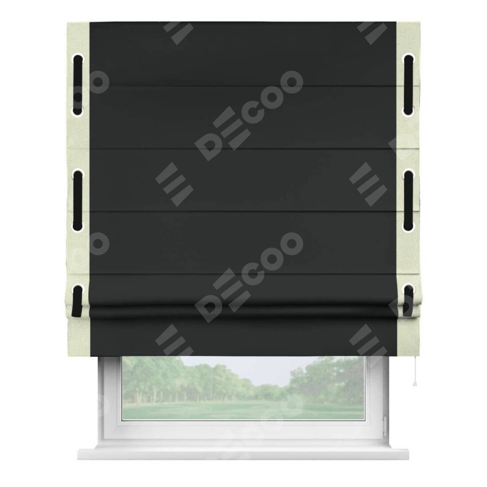 Римская штора «Кортин» для проема, блэкаут однотонный черный с кантом Стрим Дуо (люверсы с пояском)