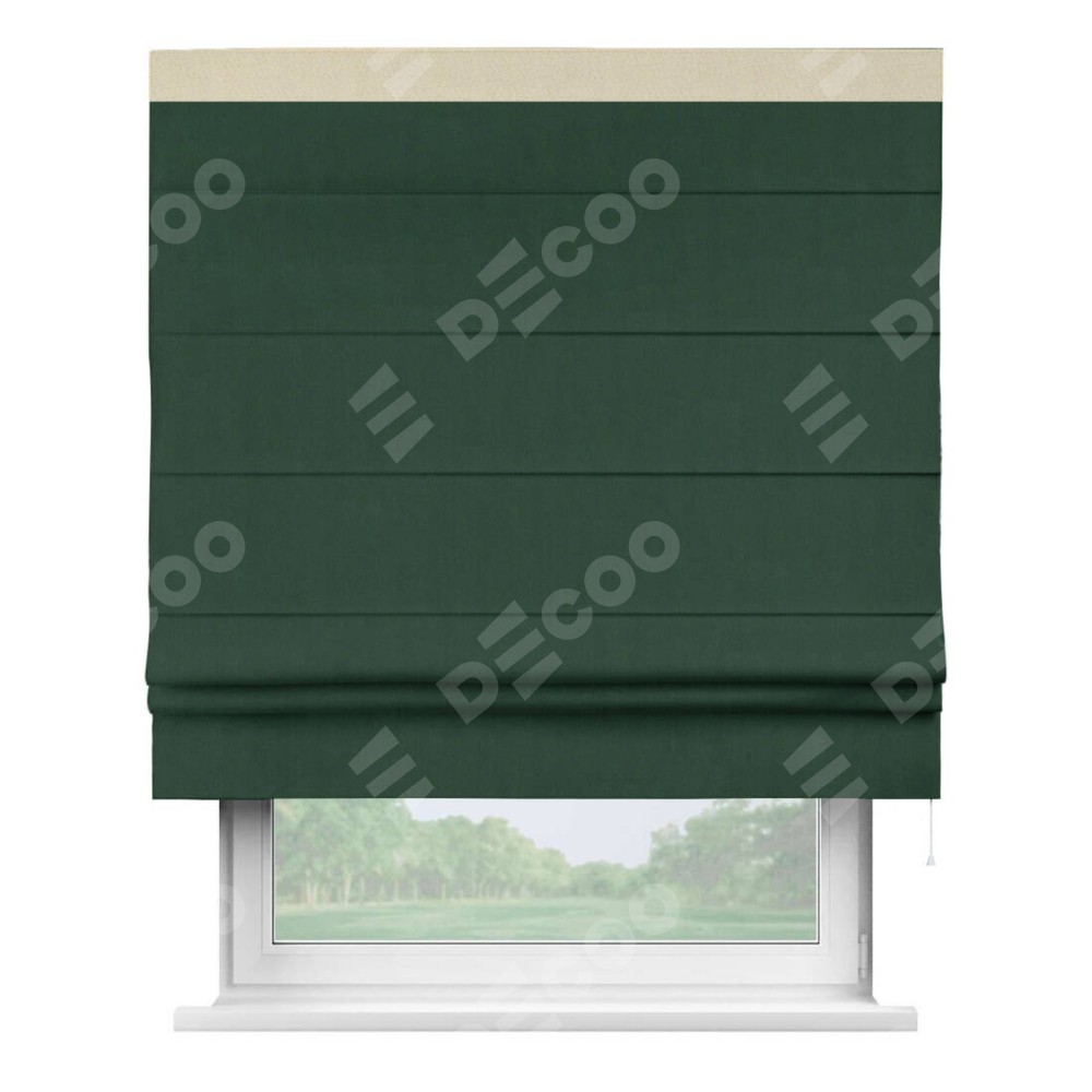 Римская штора «Кортин» для проема, блэкаут однотонный зелёный с кантом Кинг