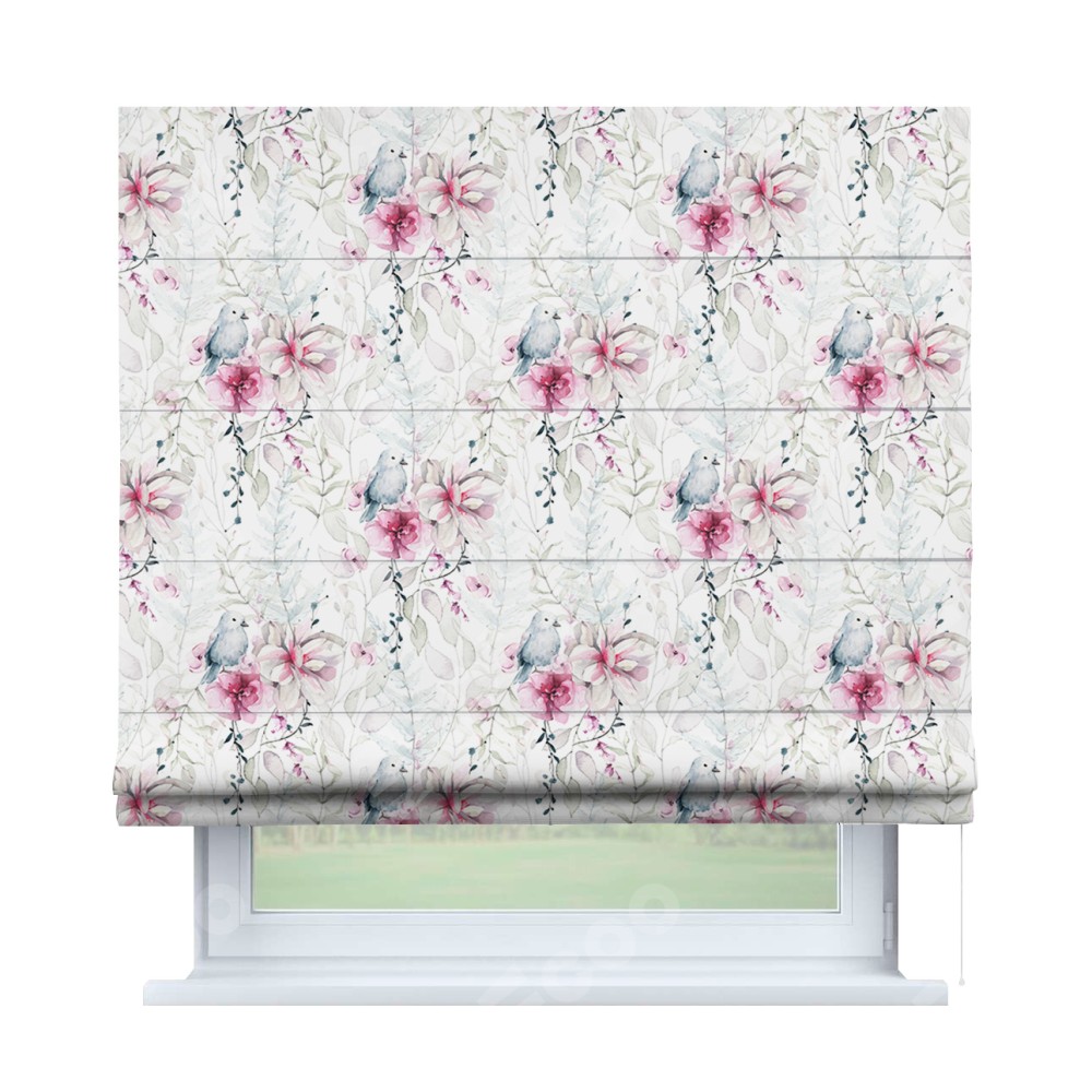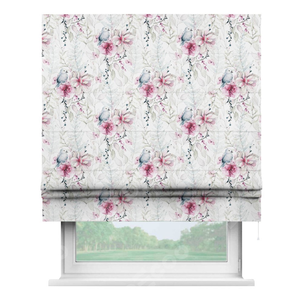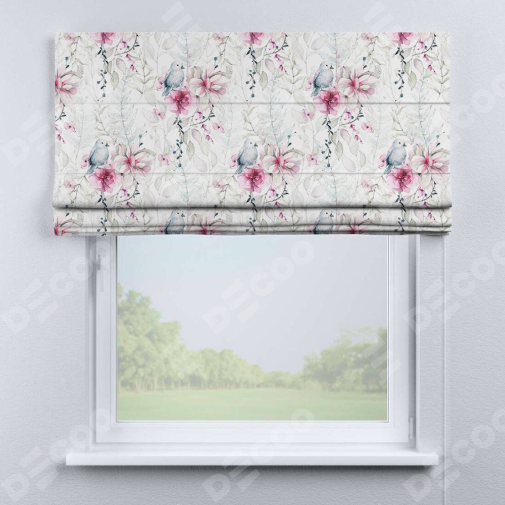 Римская штора «Кортин» для проема «Мелодия цветов» отлично подойдёт для интерьера: в спальню, на балкон и в кухню.