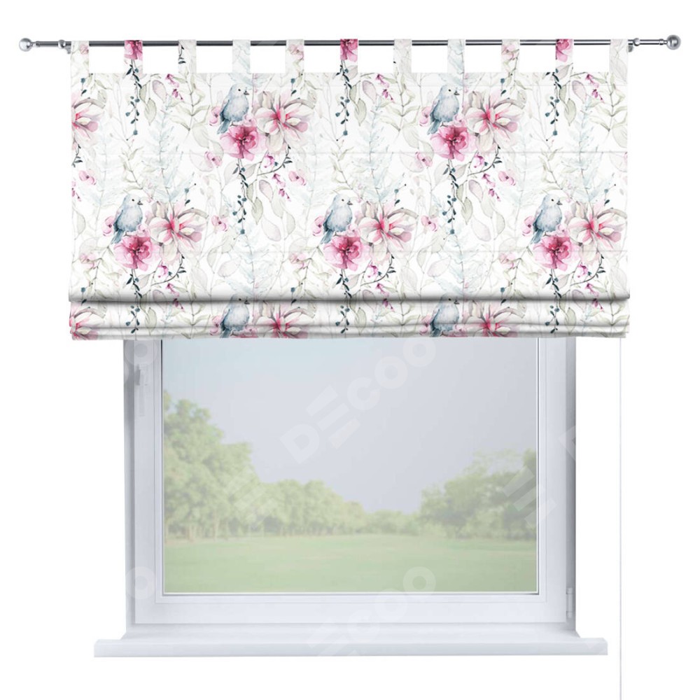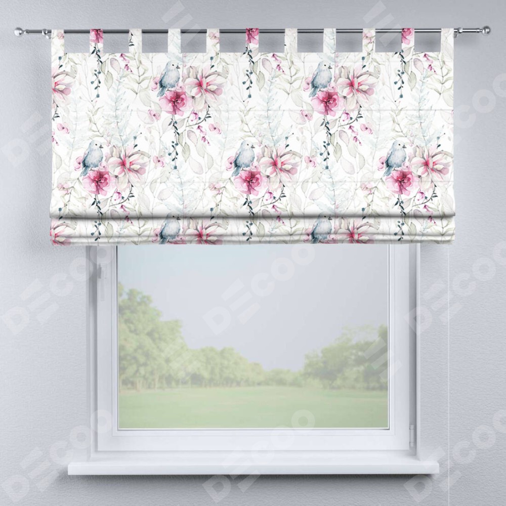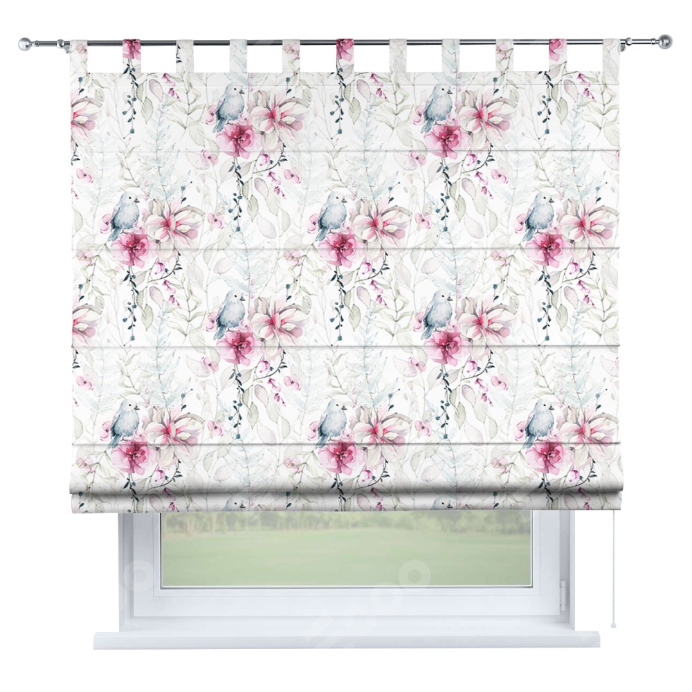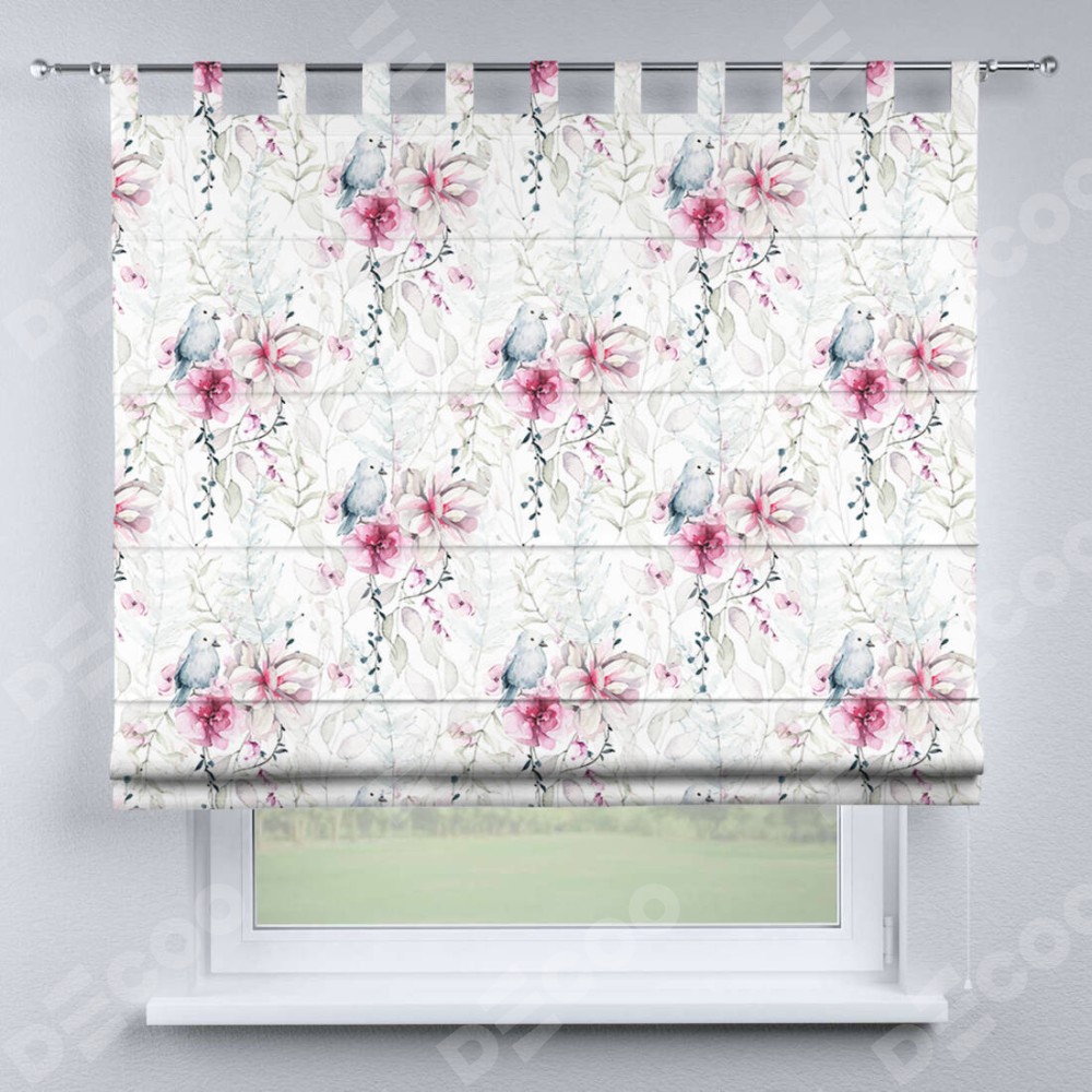 Римская штора производителя «Cortin», используется для проёма, пошита из ткани блэкаут с нанесением сублимационной печати «Мелодия цветов». Данная модель пошита на петлях, комплектуется на выбор круглым карнизом и подходит для монтажа на стену. Римская штора на петлях имеет простую систему регулировки высоты, отличительным преимуществом данной модели является простой способ монтажа. Достаточно повесить ее на трубу и штора готова!