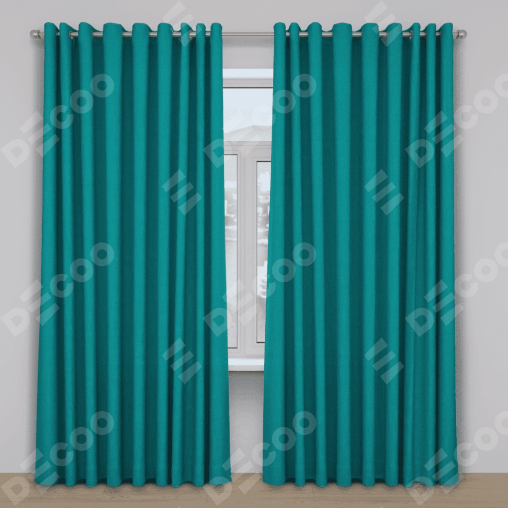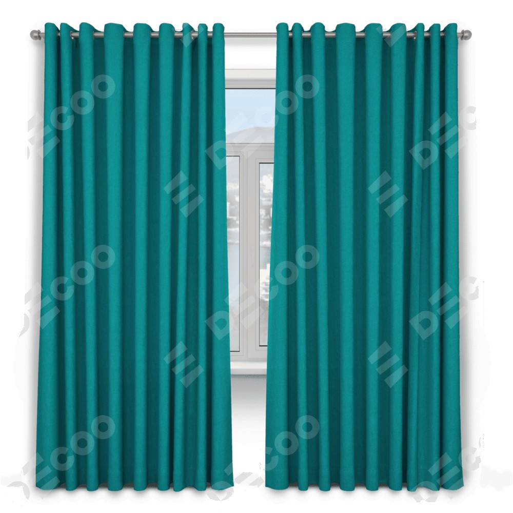 Комплект штор 2 шт, лён димаут, цвет тёмно-бирюзовый, размер от 50 см