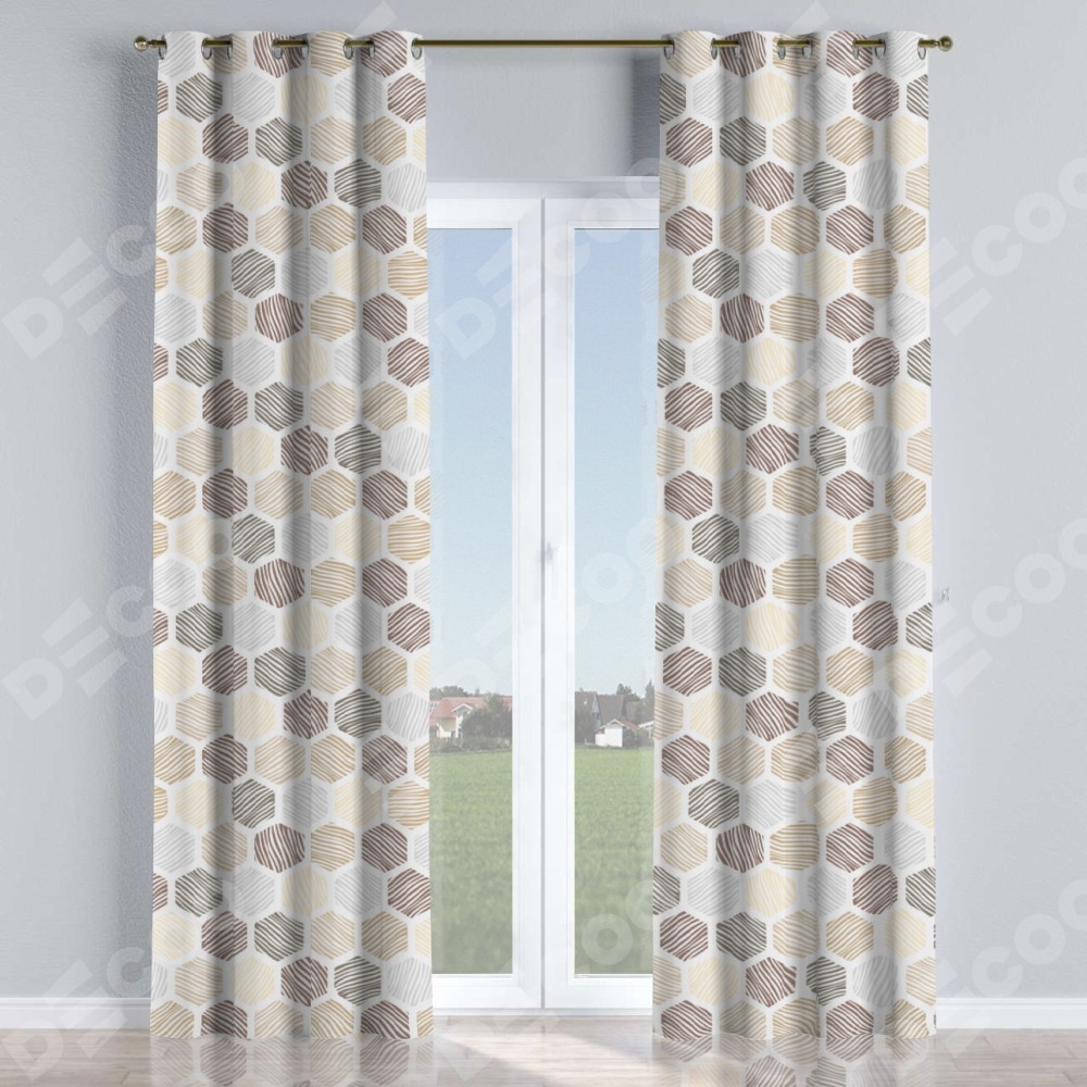 Комплект штор на люверсах «Мозаика соты» отлично подойдёт для интерьера шторы в гостиную, шторы для кухни и шторы для столовой.